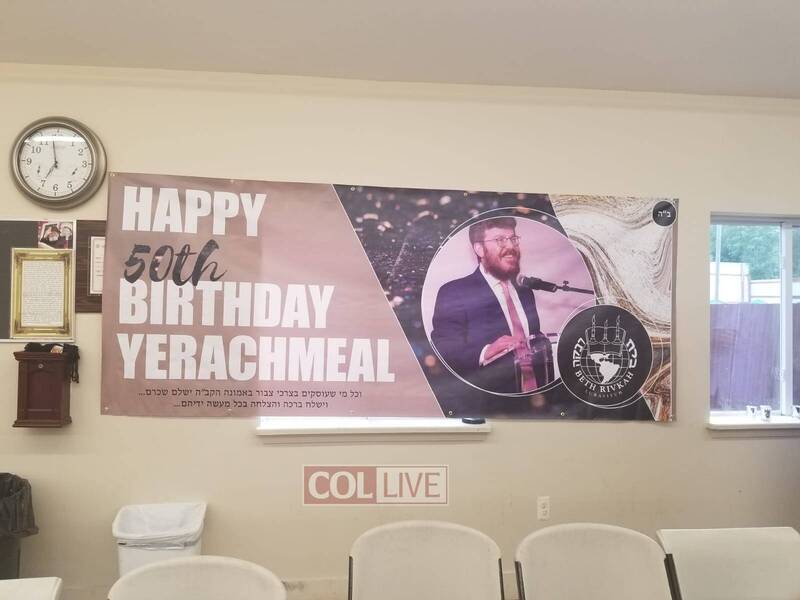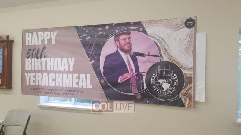 Crown Heights real estate businessman and donor Yerachmeal Jacobson marked his 50th birthday with a grand Shabbos meal and farbrengen for the entire colony, with men, and women and children invited.