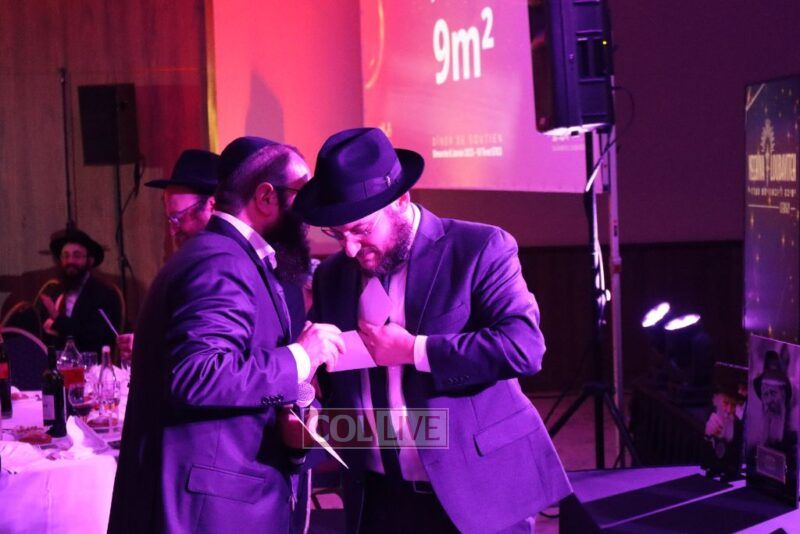 In fact, throughout the evening, close to 340,000 euros were raised for the Yeshiva to purchase a new dormitory. Donors were given coins and dollars received from the Rebbe.