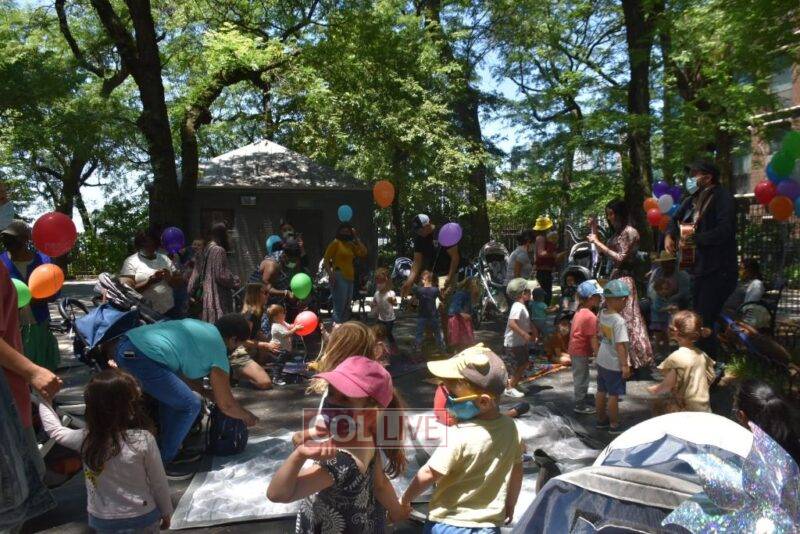 “I couldn’t believe the amount of phone calls we received today in my office asking if the program is really happening in the park,” reports Shternie Raskin. “Everyone was eager to celebrate Shabbat, sing along with our musician Kyle Tigges and read a story with our outreach director, Morah Sheli. We gave out free Challah, bubbles, chalk, brochures and colorful baloons. Everyone was super excited to see the program back.”