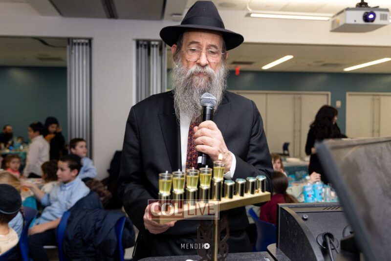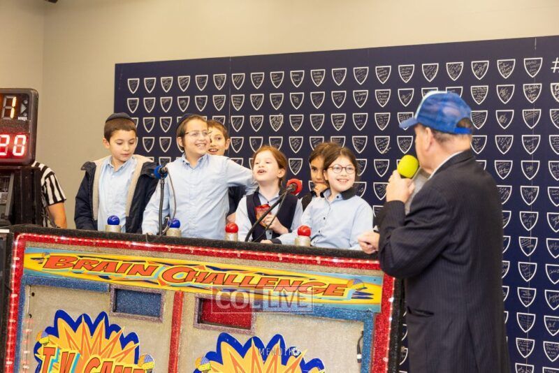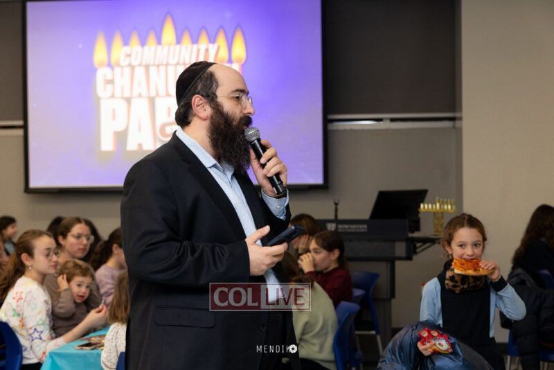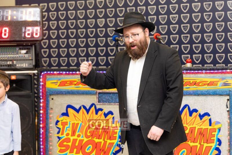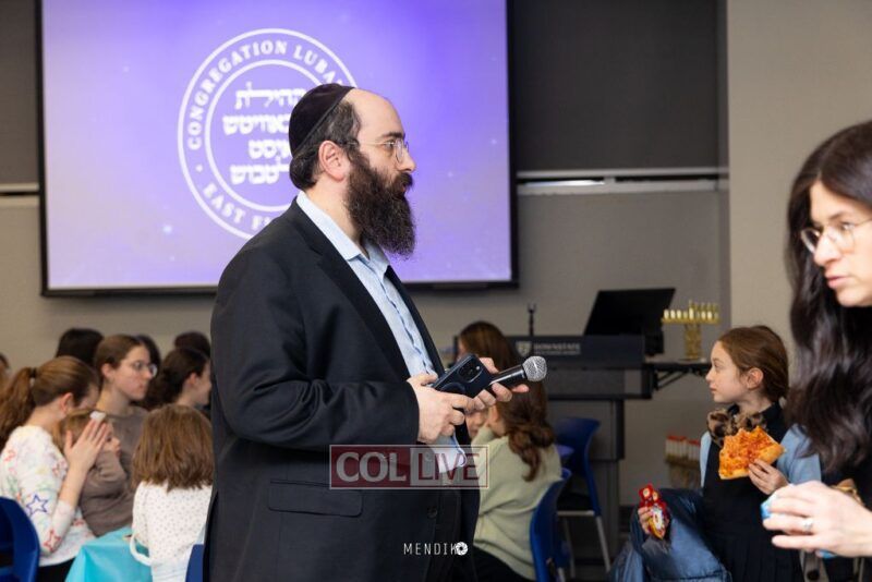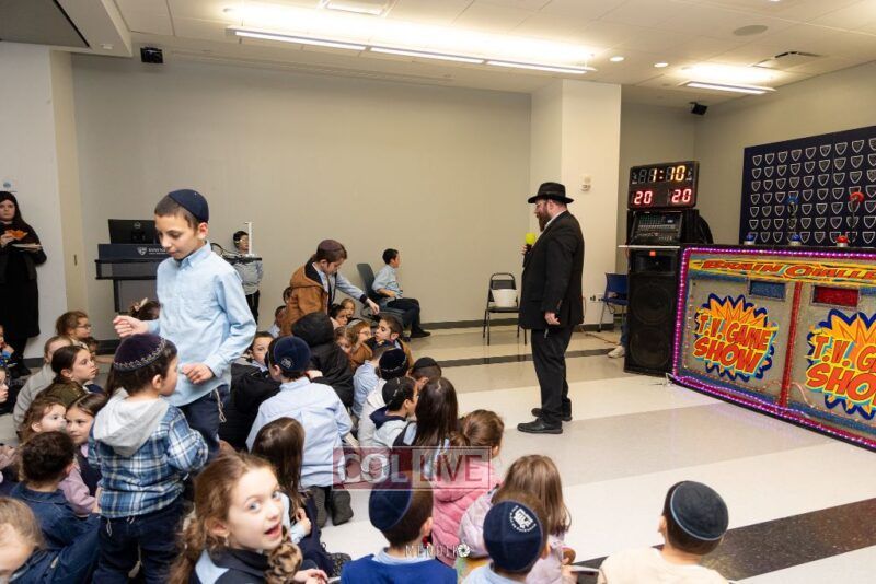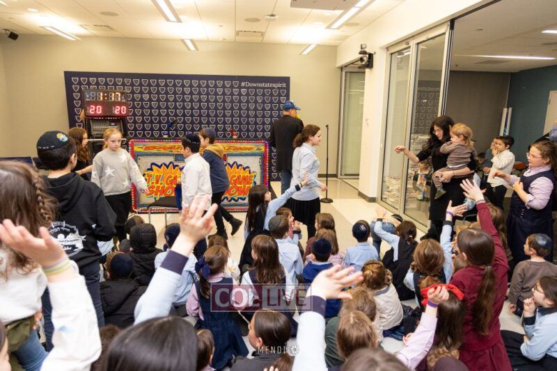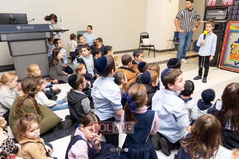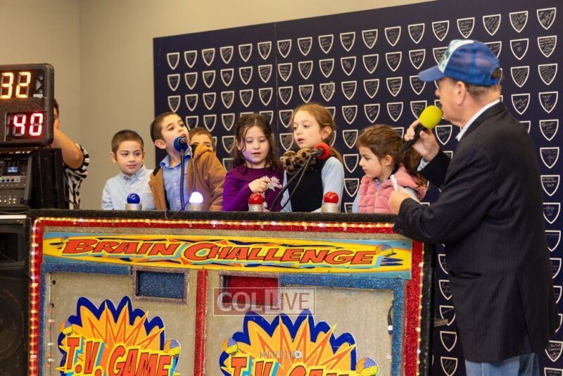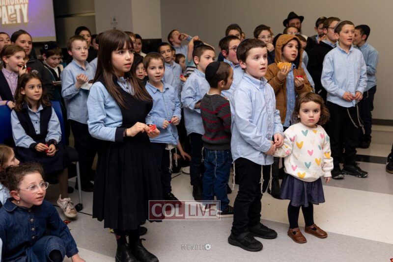 Families of Lubavitch of East Flatbush gathered for a Chanukah party featuring a Menorah lighting, pizza party and game show entertainment.