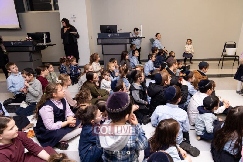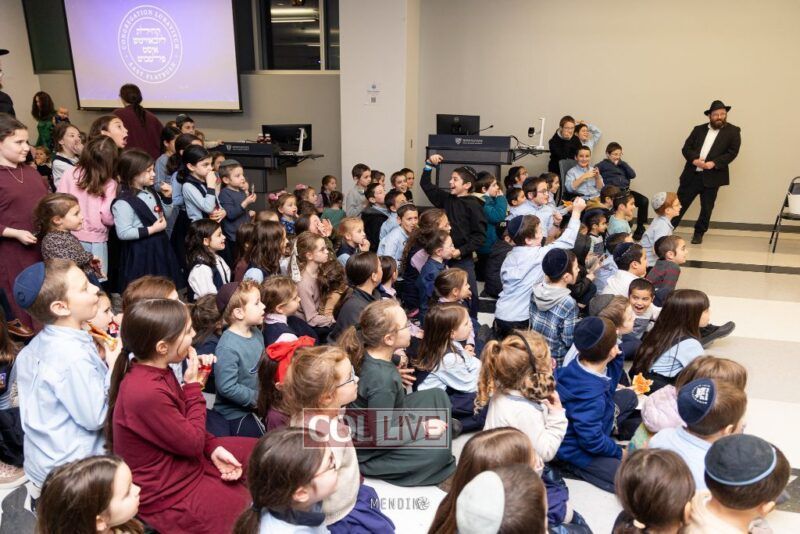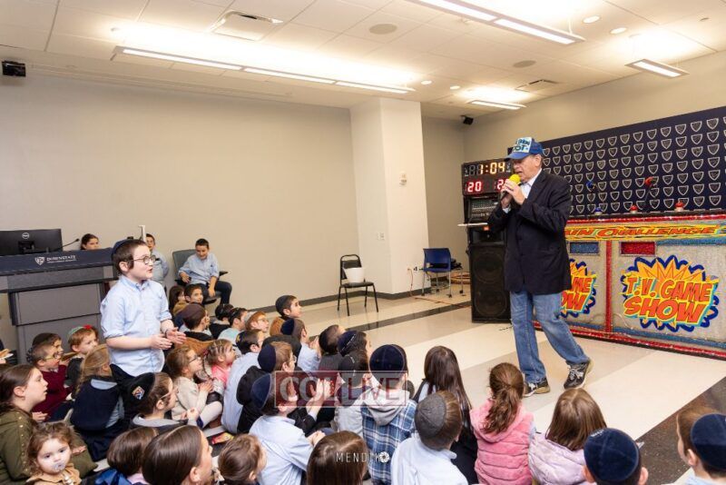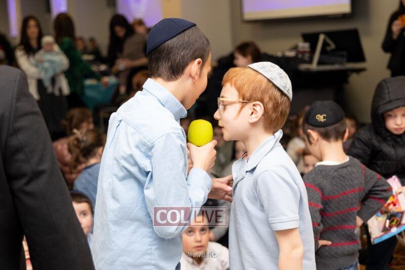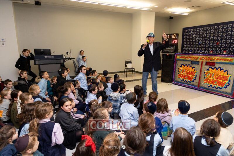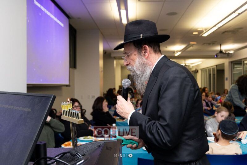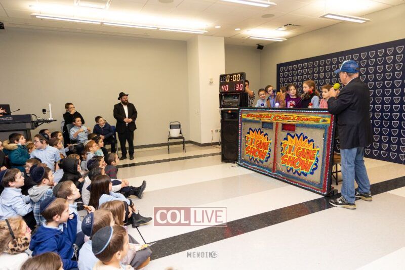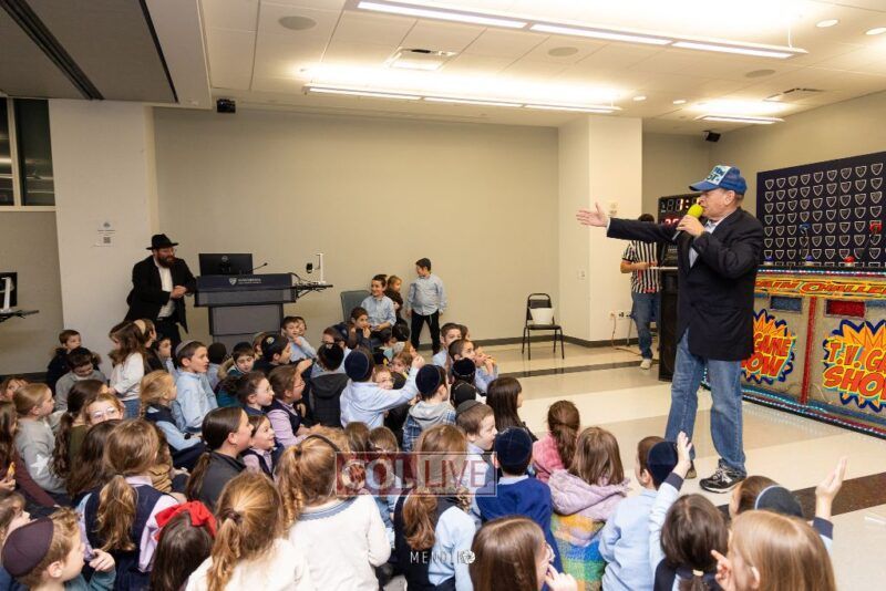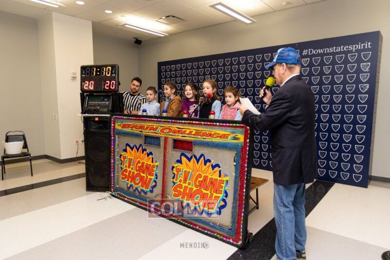 Families of Lubavitch of East Flatbush gathered for a Chanukah party featuring a Menorah lighting, pizza party and game show entertainment.