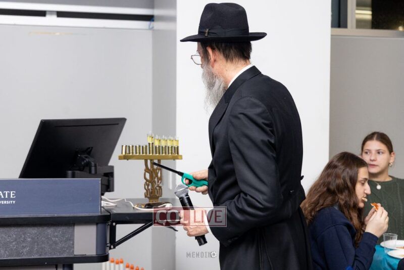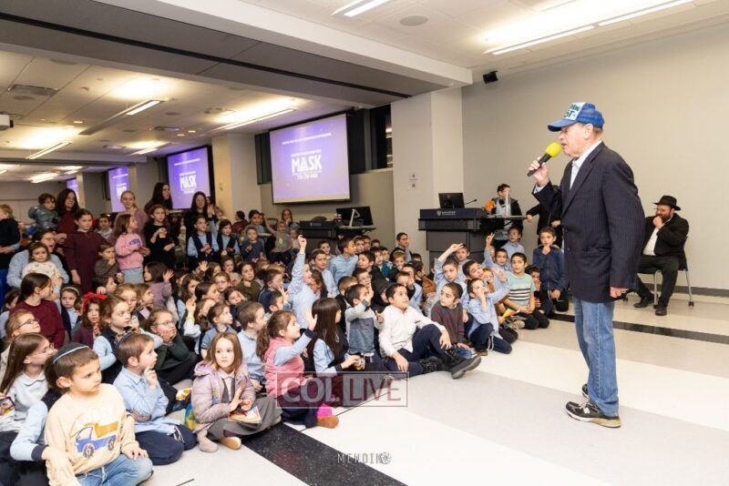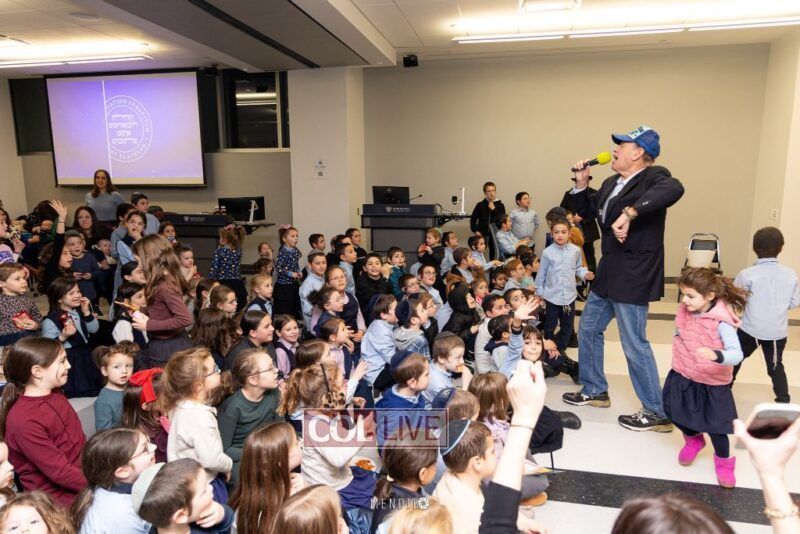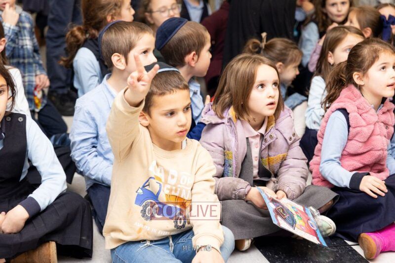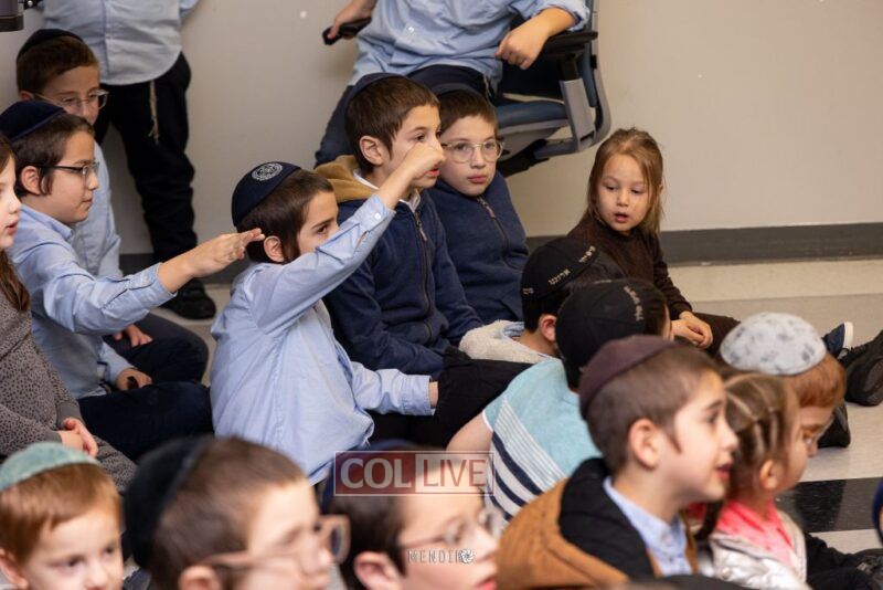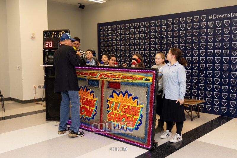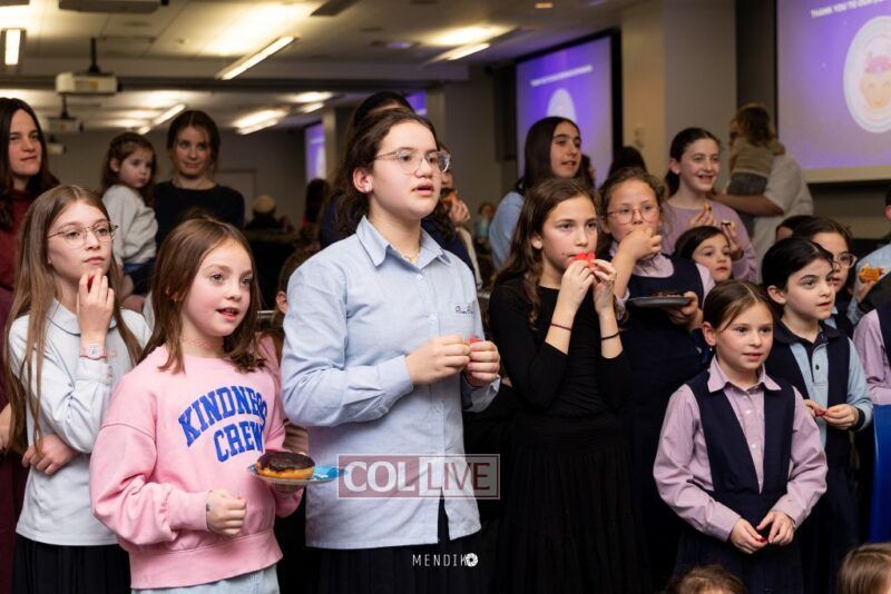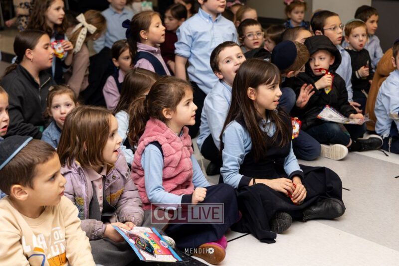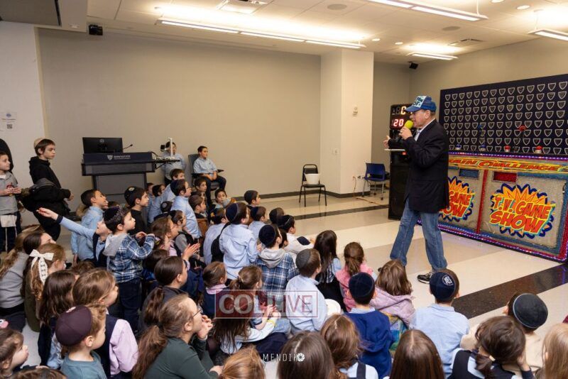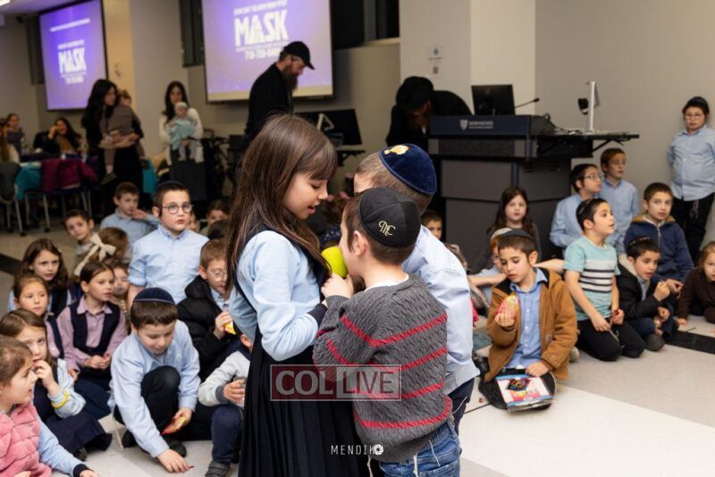 Families of Lubavitch of East Flatbush gathered for a Chanukah party featuring a Menorah lighting, pizza party and game show entertainment.