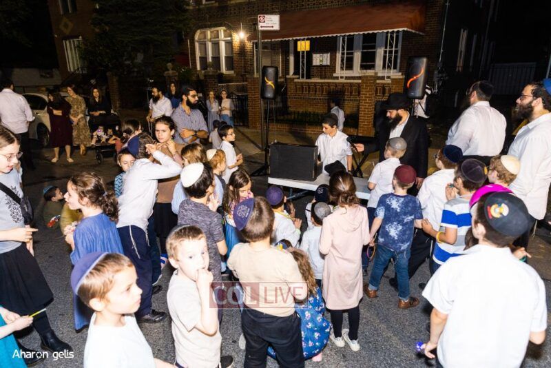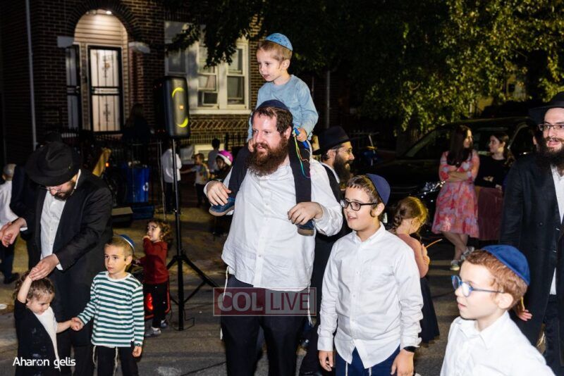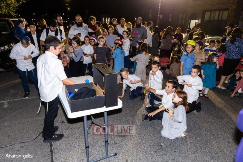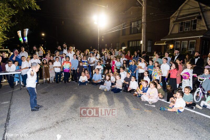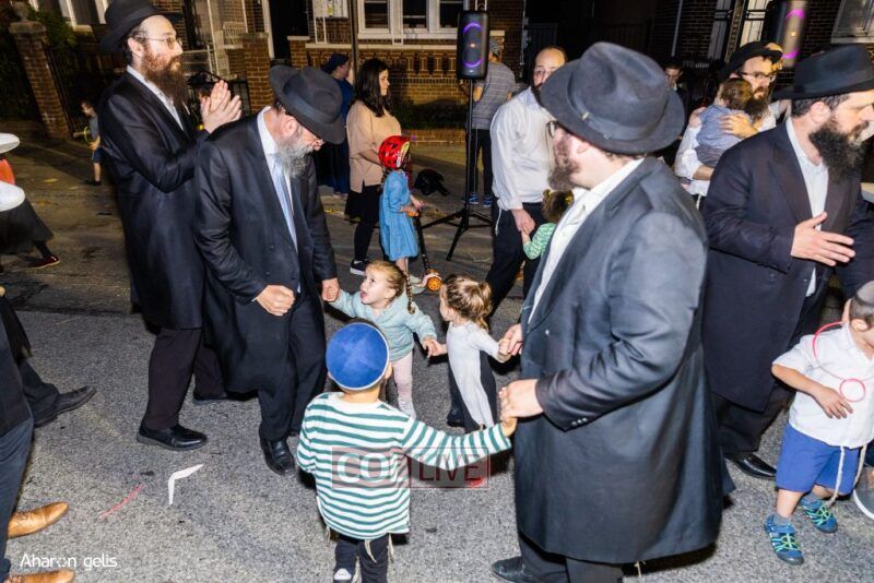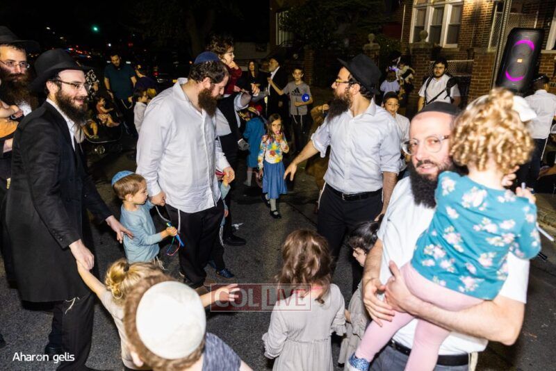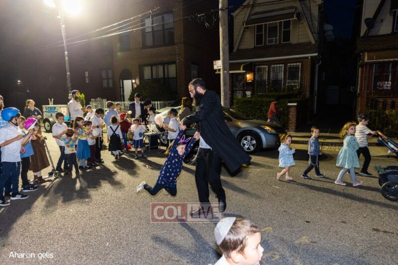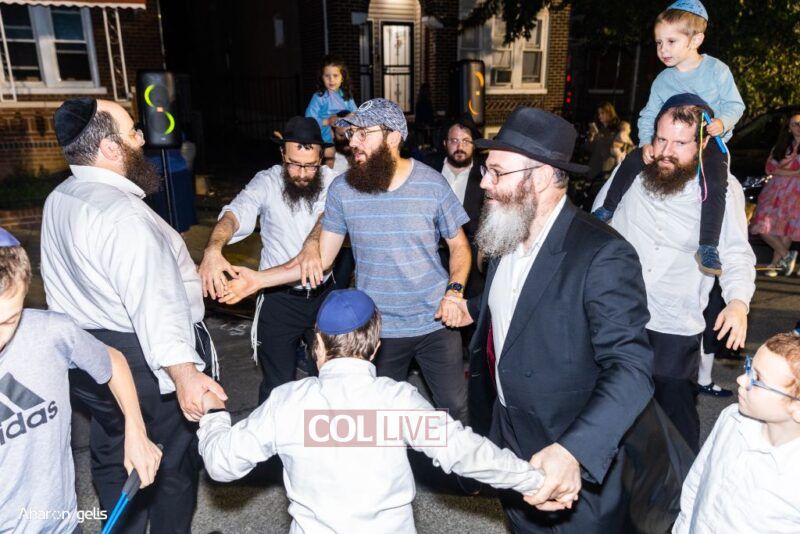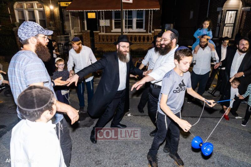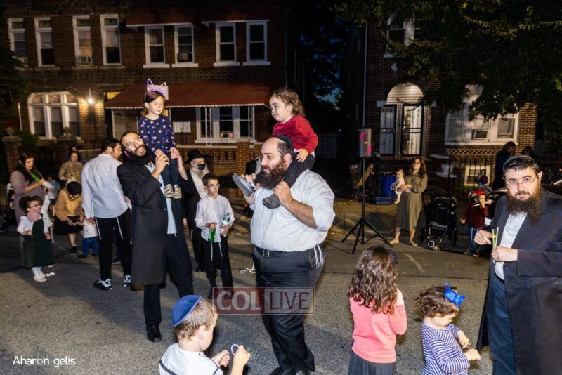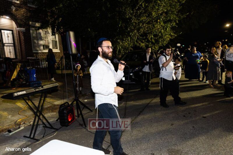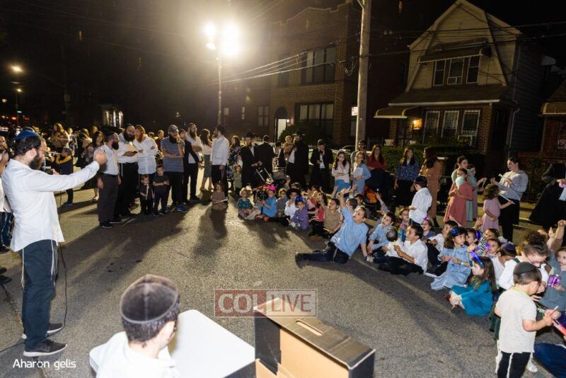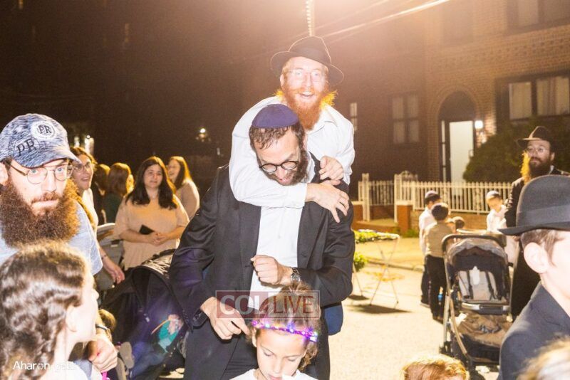 A joyous Simchas Beis Hashoeiva celebration took place in East Flatbush on Wednesday with live music, pesukim, entertainment and dancing. Photos