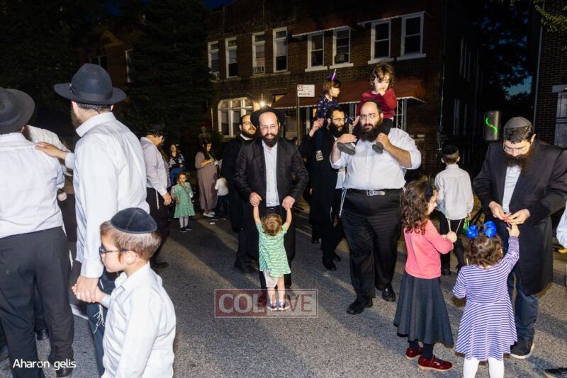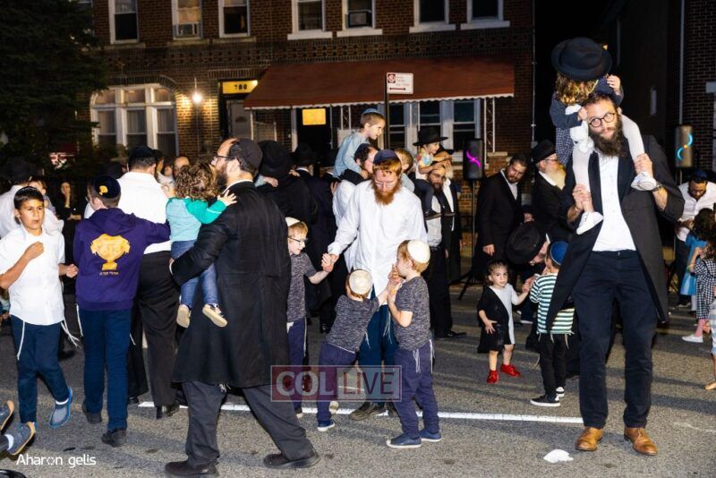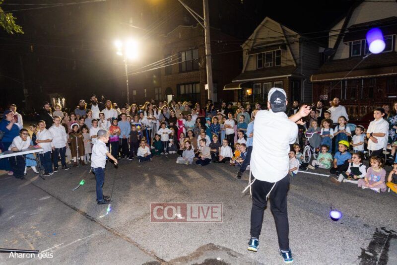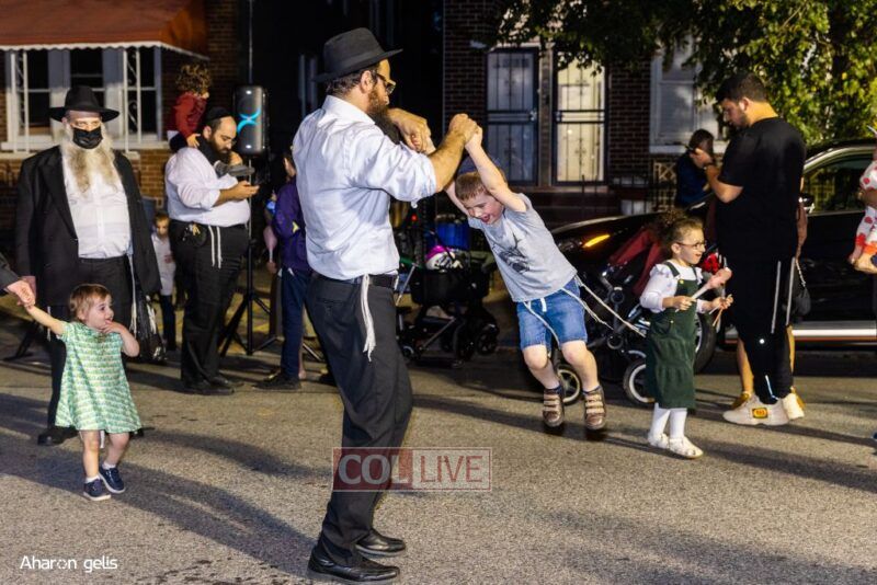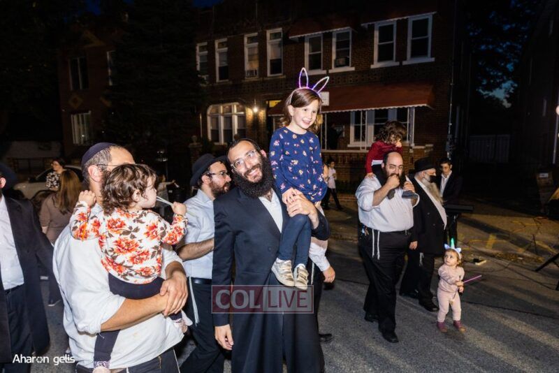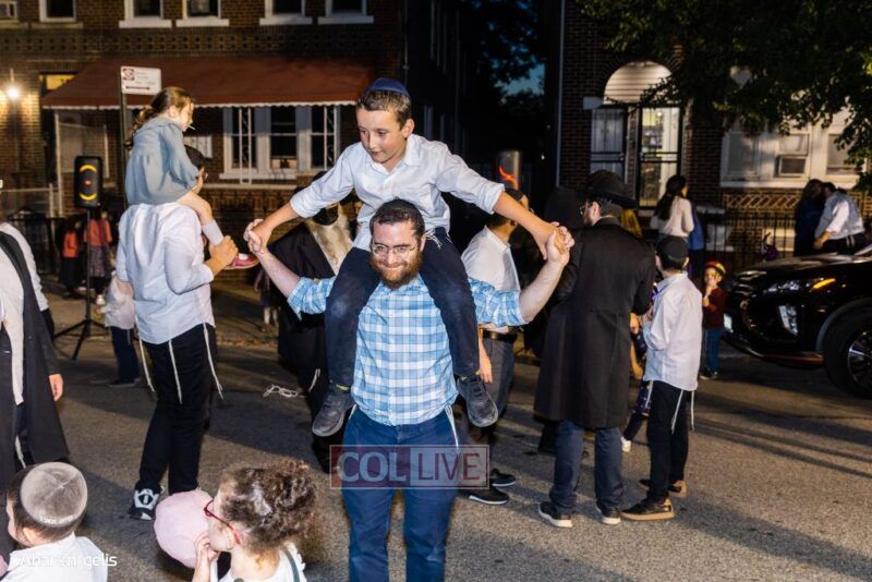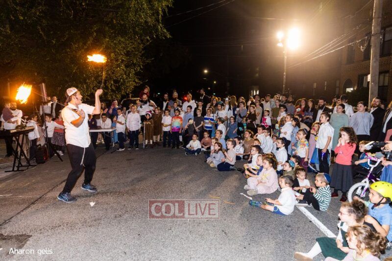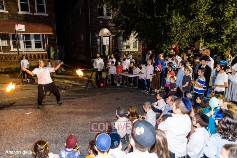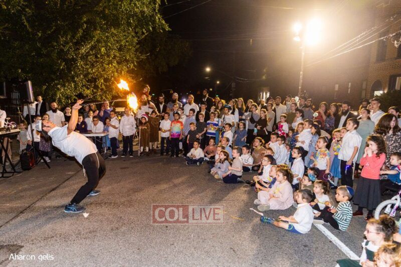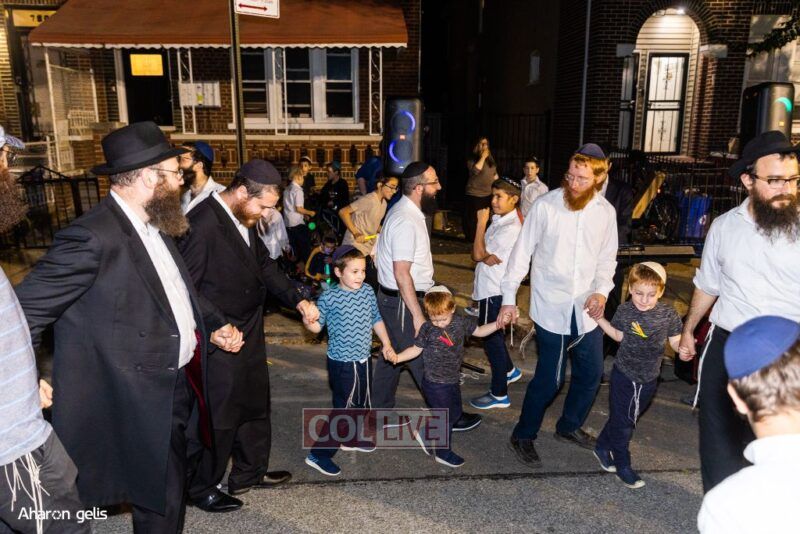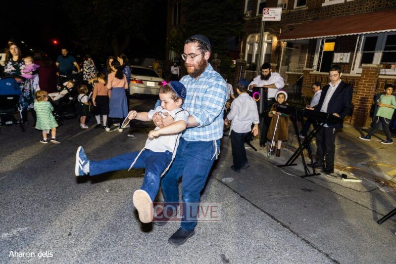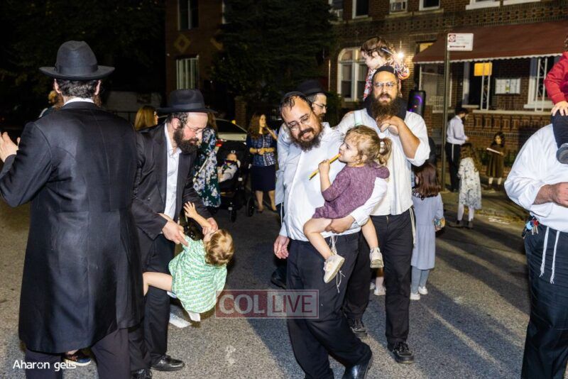 A joyous Simchas Beis Hashoeiva celebration took place in East Flatbush on Wednesday with live music, pesukim, entertainment and dancing. Photos