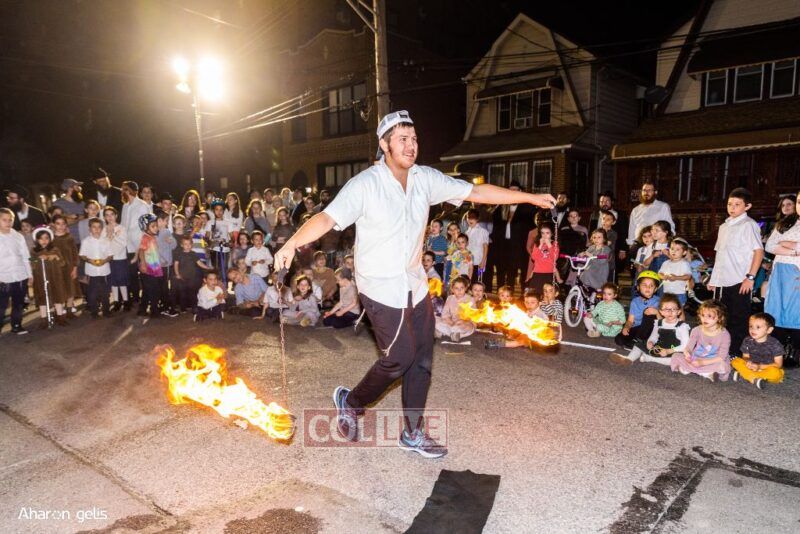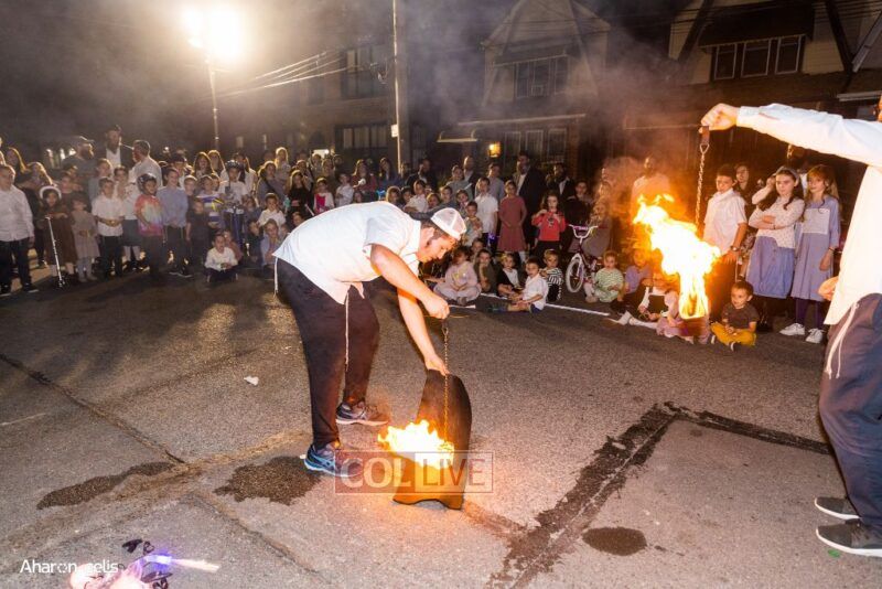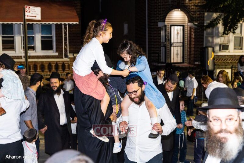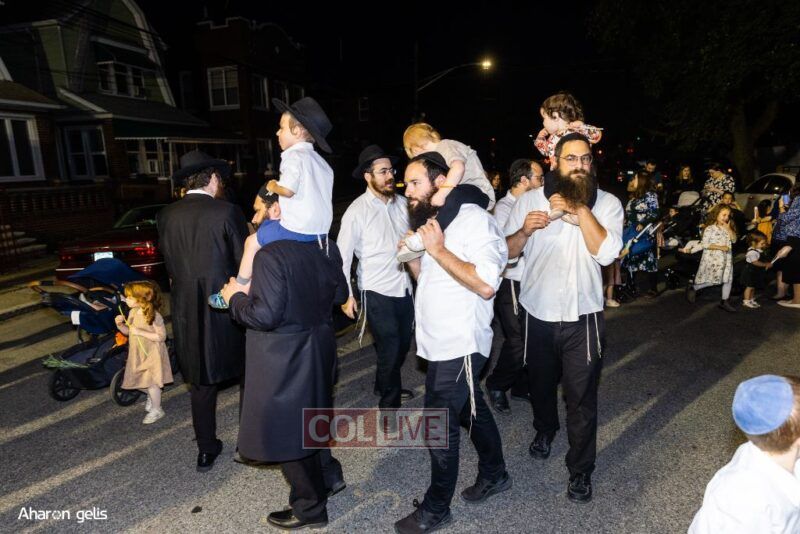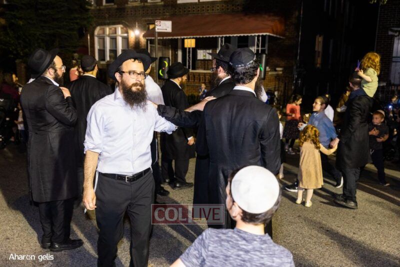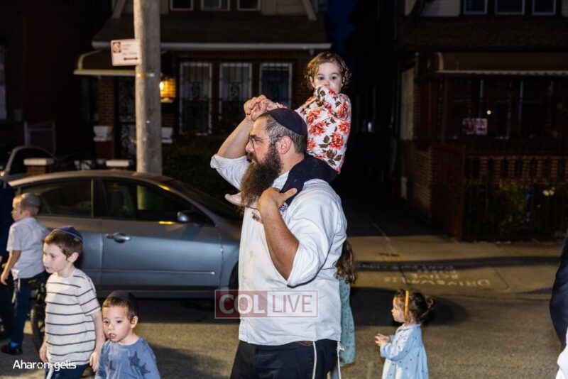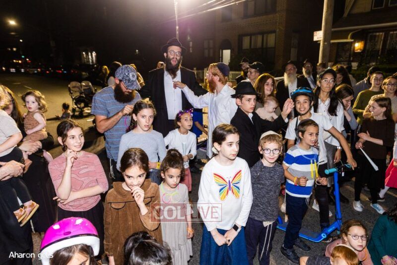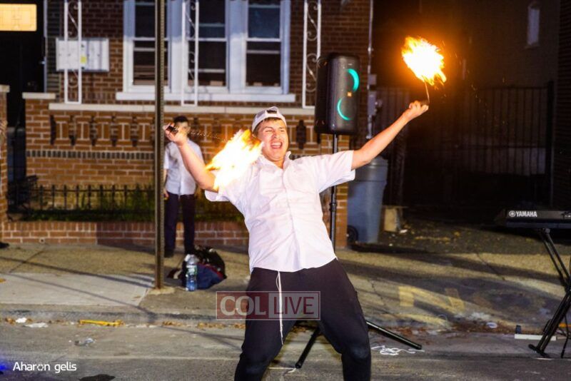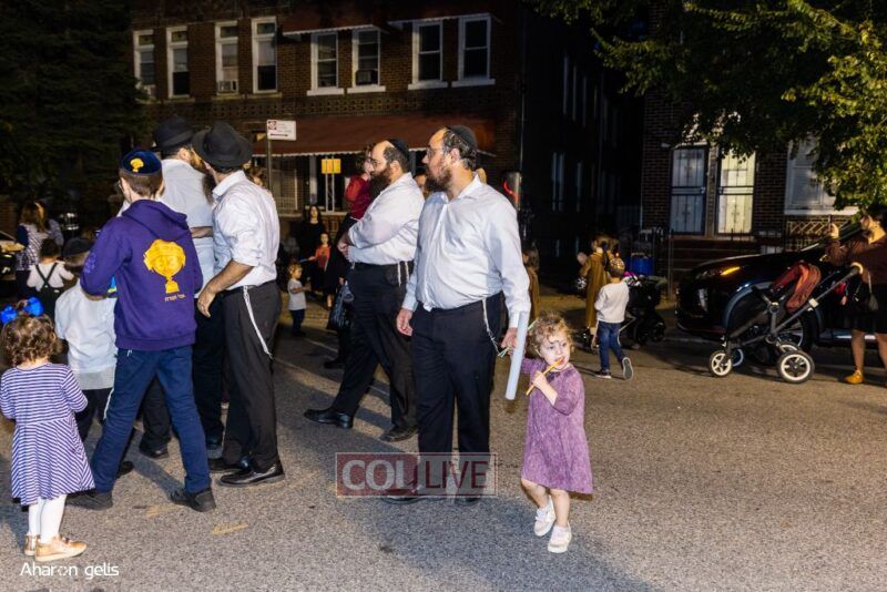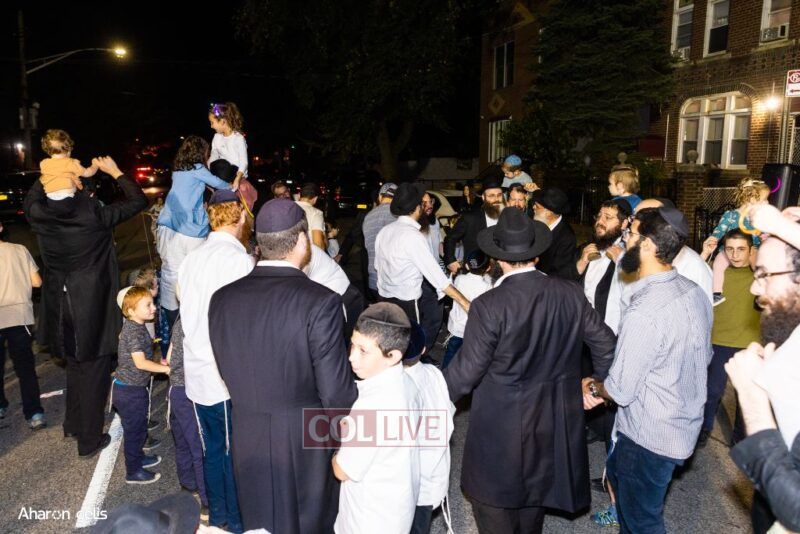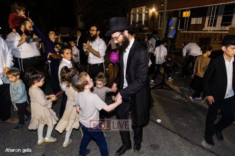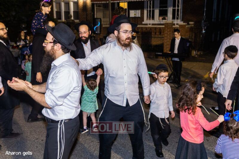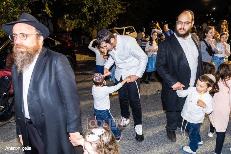 A joyous Simchas Beis Hashoeiva celebration took place in East Flatbush on Wednesday with live music, pesukim, entertainment and dancing. Photos