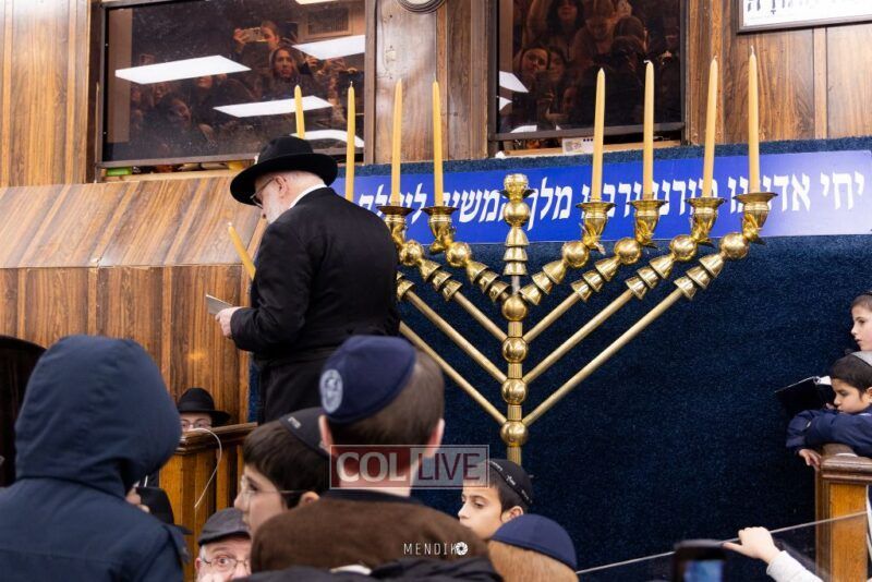 Eighth Chanukah Candle Lit at 770’s Main Shul