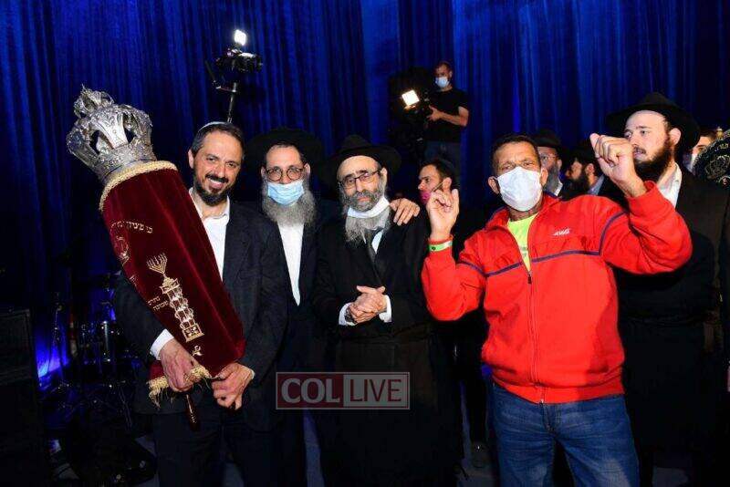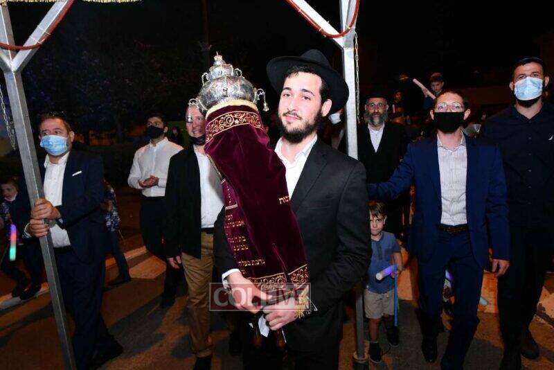 The Torah was then led to the Shul for joyous hakafos followed by a festive seudah and Farbrengen, coordinated by Tzvaim Productions.