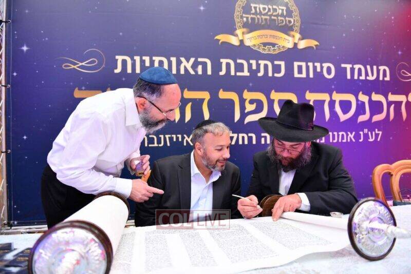 The Torah was then brought to Rechovot where the final letters were written at the home of the lead donor, R’ Shmuel Eisenberg.