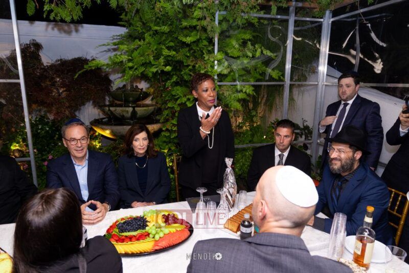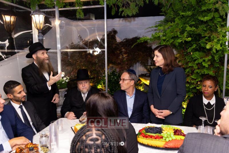 The importance of Crown Heights was on full display again this year with the annual gathering of celebrities at the succah of Chanina and Orly Sperlin on Tuesday. New York State’s three highest elected Statewide officials were in attendance, led by Governor Kathy Hochul and husband Bill Hochul, and including Comptroller Tom Dinapoli and Attorney General Tish James.