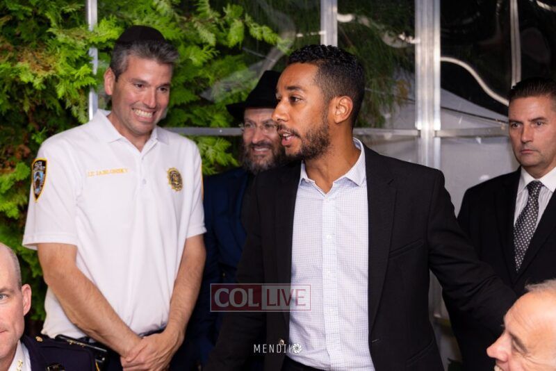 Other guests in attendance included Yossi and Mica Soffer of COLLive, Ingrid Lewis Martin, Joel Lefkowitz, Menashe Shapiro, and Mo Davis (Mayor’s Office), Jacob Eisdorfer (Brooklyn BP), Josh Kramer (AJC), Chaplain Rabbi Yaakov Goldstein (ret), Michael Cohen (Simon Wiesenthal Center), Pesach Osina (NYCC Speaker), Jake Adler and Eva Weiner (Governor), Rebecca Saidlower and Daniel Rosenthal (UJA), Mark Appel (The Bridge), David Klestchik and Alex Gurevich (Brooklyn DA), Inspector Richard Taylor and Lieutenant Ira Jablonsky (NYPD), Gil Cygler, Pinny Hikind (NYC Comptroller), Akel Williams, Sarana Purcell and Kenesha Traynham-Cooper (District Leaders), Raoul Rothblatt (NYS Asssembly), Tanesha Thompson (NYCCouncil), Jonathan Zalinsky (ADL), Yaacov Flichkin (Alliance for local Cooperation), David and Gabriella Daxsen (Ecuadorian Businessman), and Rabbi Eli Slavin (Office of Congress member Yvette D. Clarke).