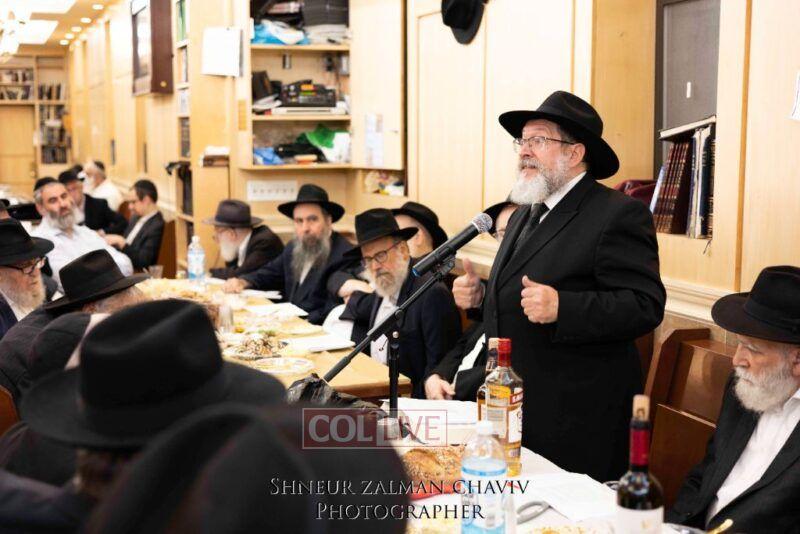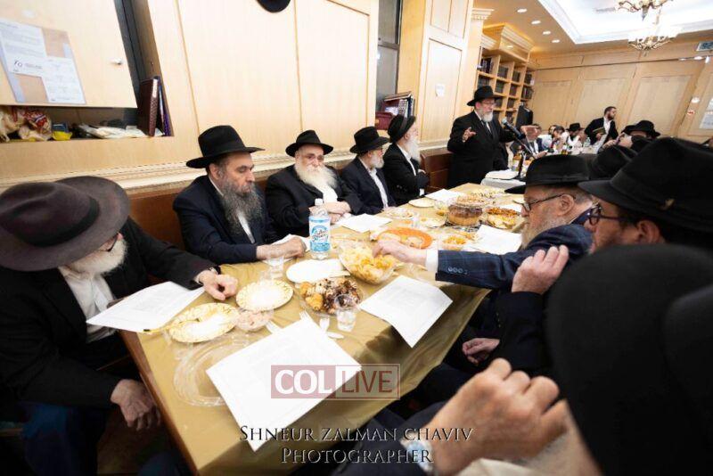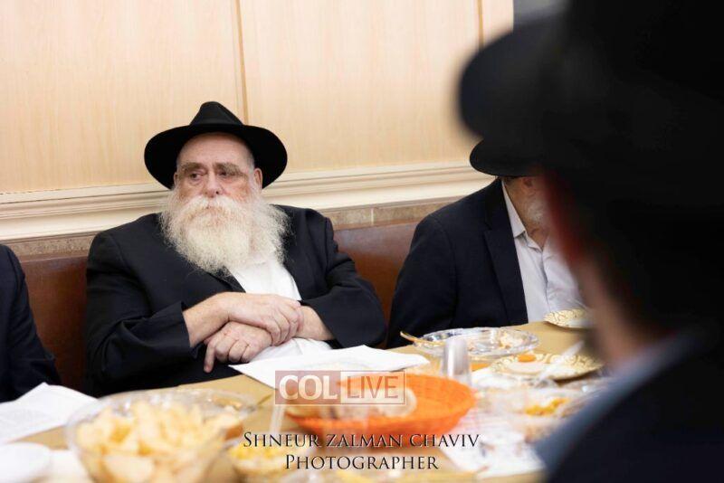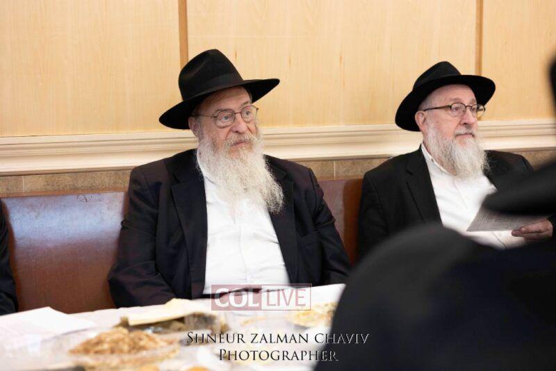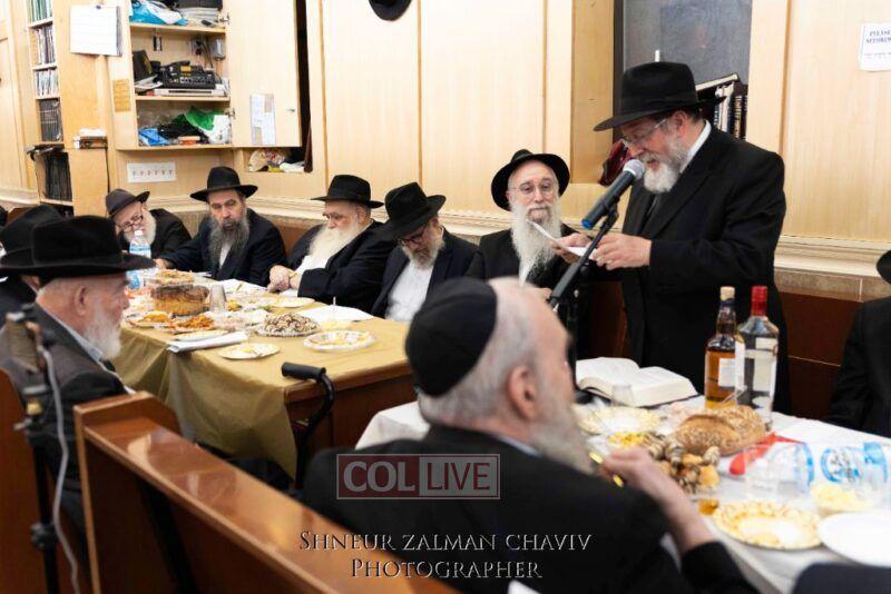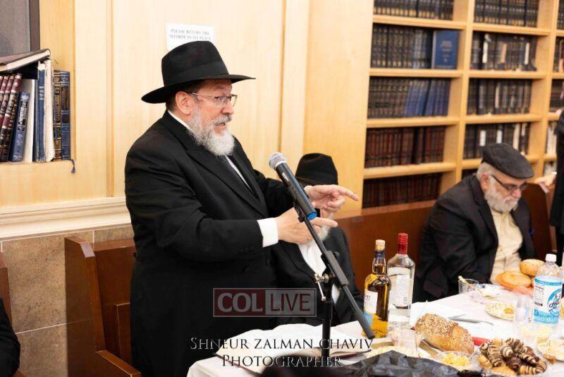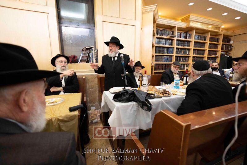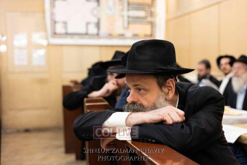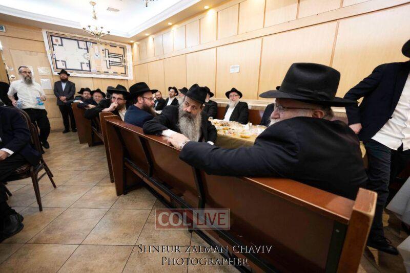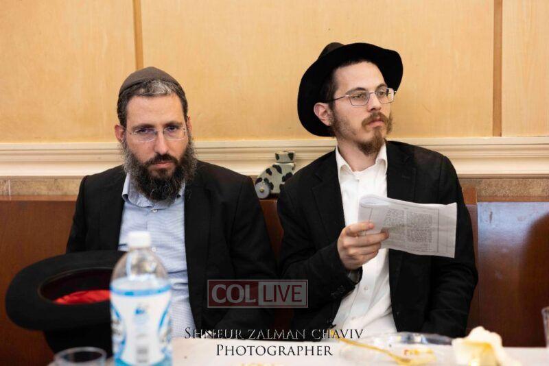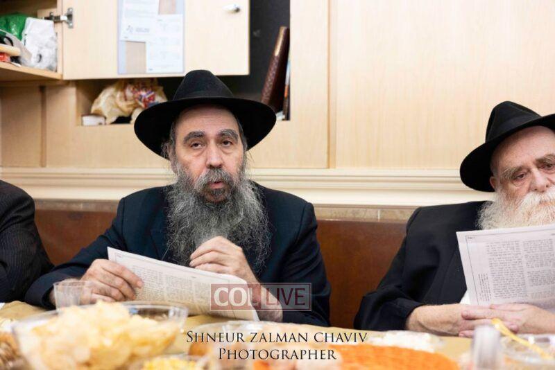 A Chof Av Farbrengen was held at Empire Shtiebel in Crown Heights on Tuesday with Rabbi Levi Garelik first giving a shiur about the teachings of the Rebbe's father, Harav Levi Yitzchok Schneerson OBM. Photos