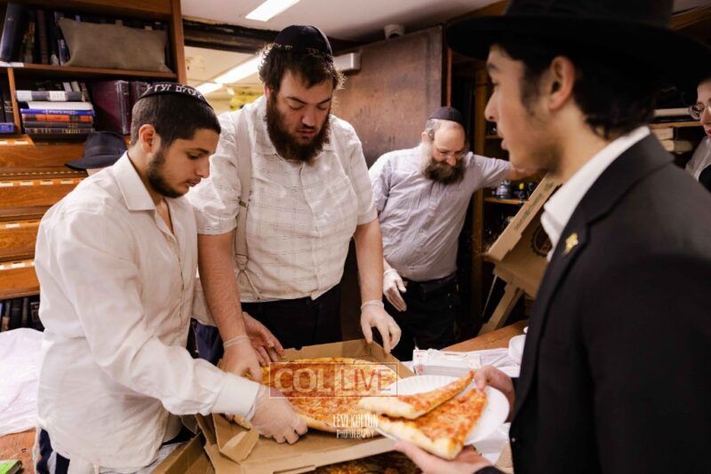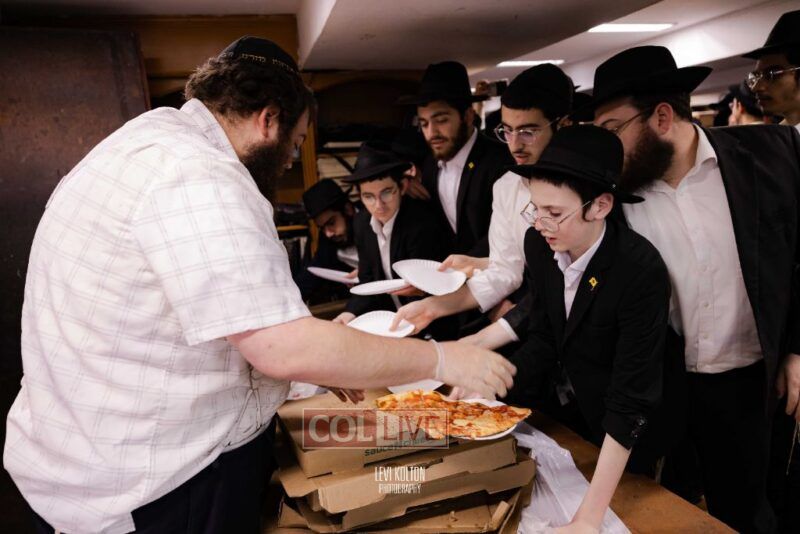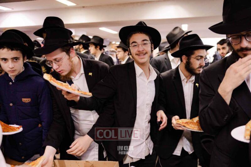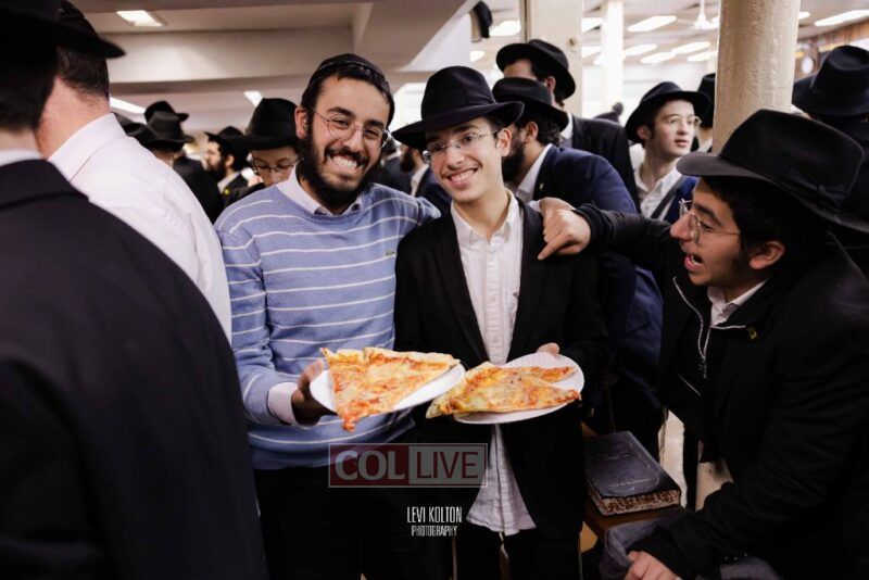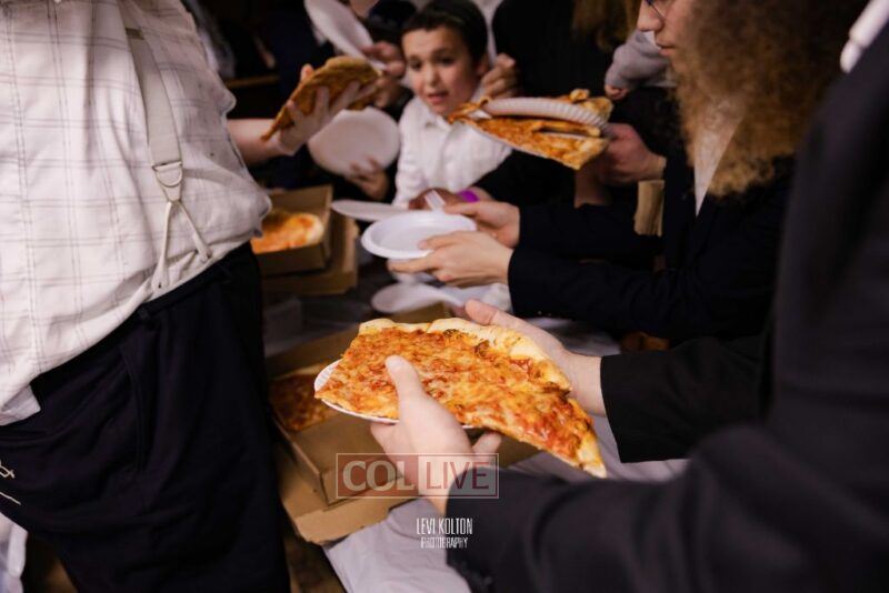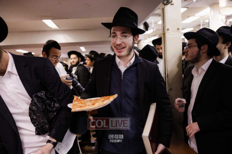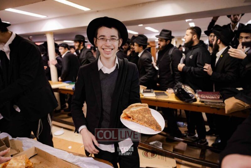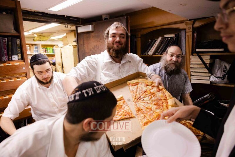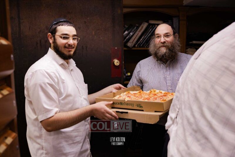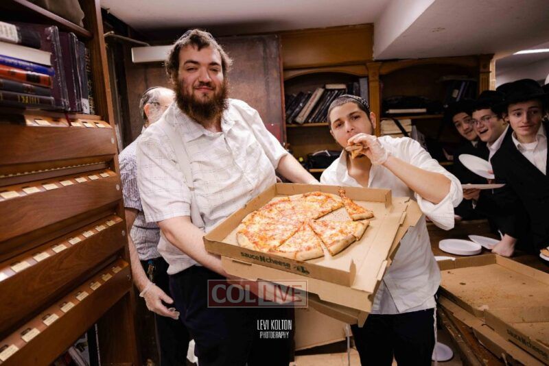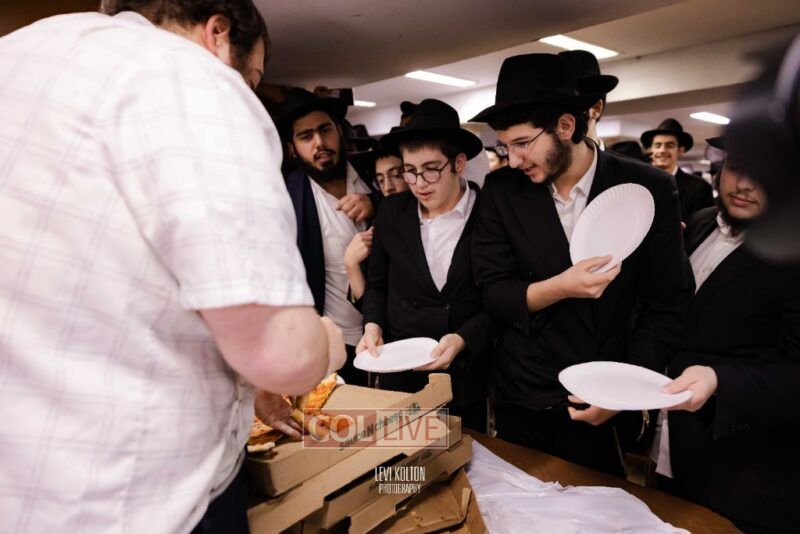 The Duchman family marked the completion of Kaddish for Rebbetzin Rochel bas Shneur Zalman Yissachar Getzel Halevi Duchman with pizza and l'chaims for the large crowd of Chassidim and bochurim at 770's Main Shul on Sunday. Photos