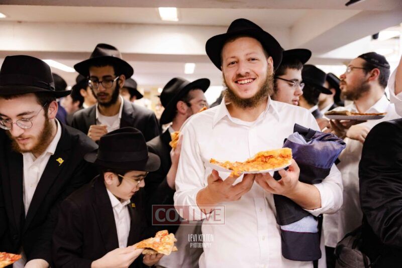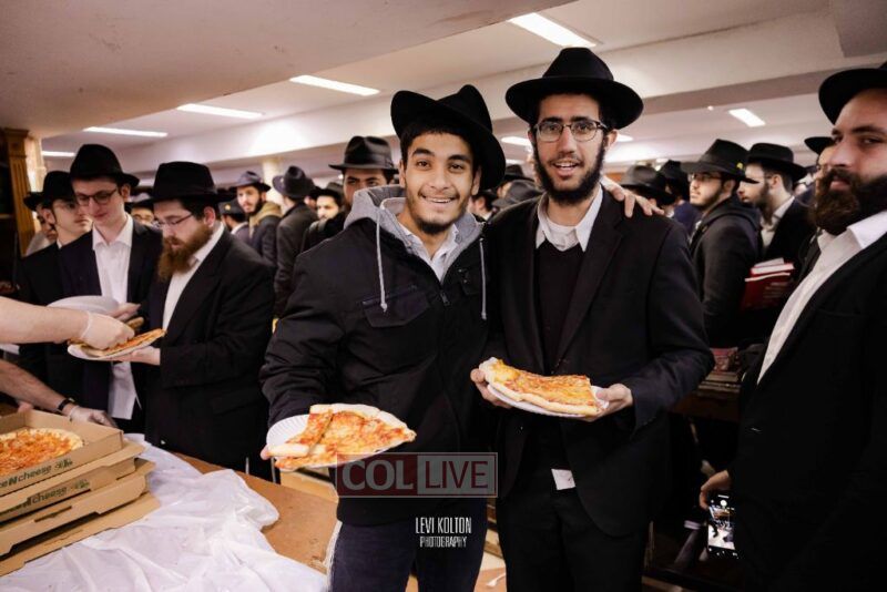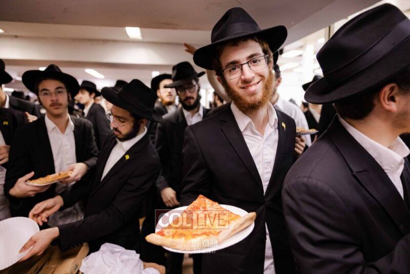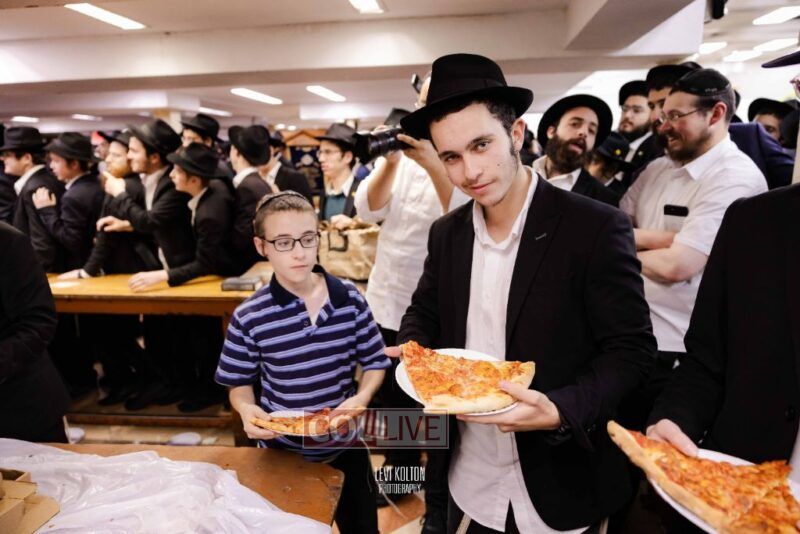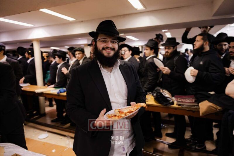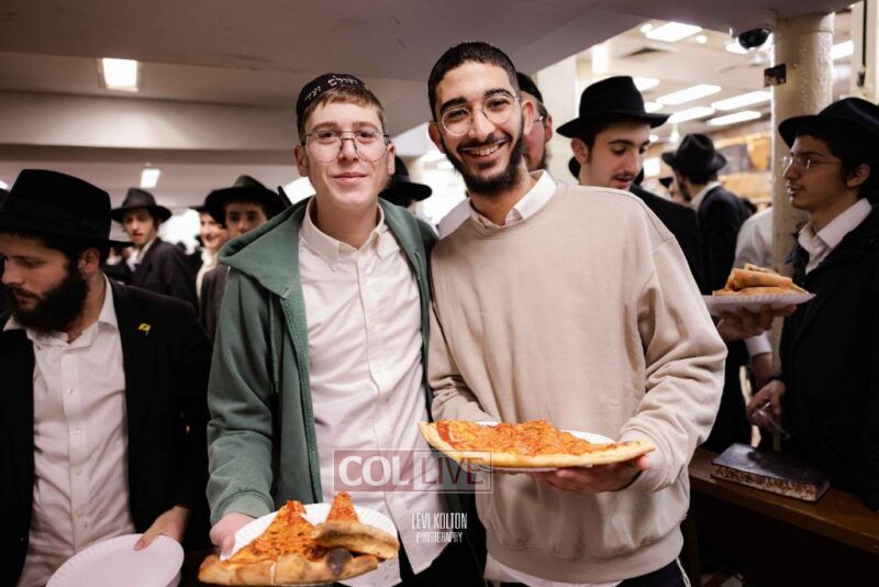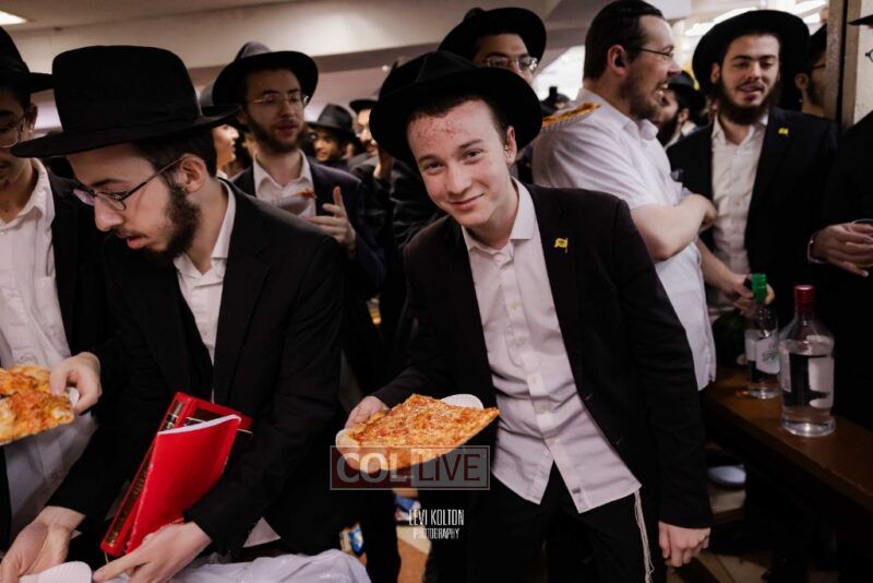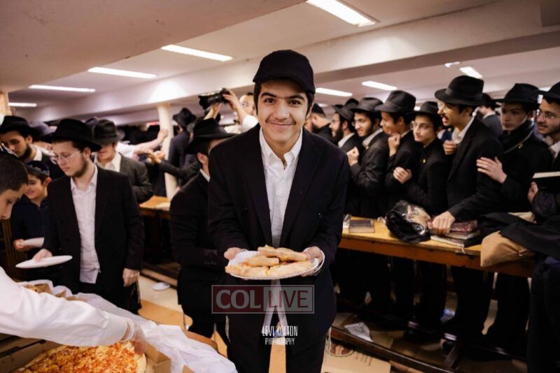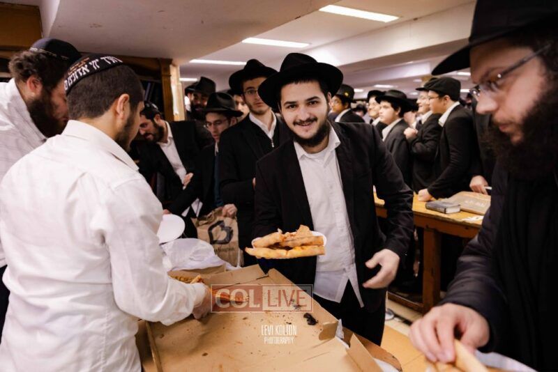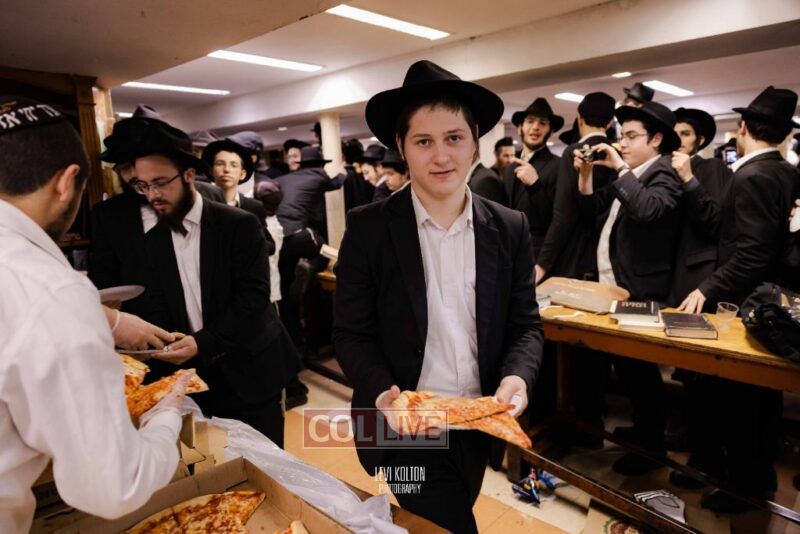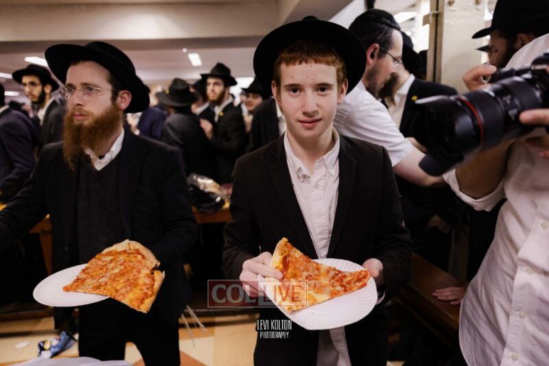 The Duchman family marked the completion of Kaddish for Rebbetzin Rochel bas Shneur Zalman Yissachar Getzel Halevi Duchman with pizza and l'chaims for the large crowd of Chassidim and bochurim at 770's Main Shul on Sunday. Photos