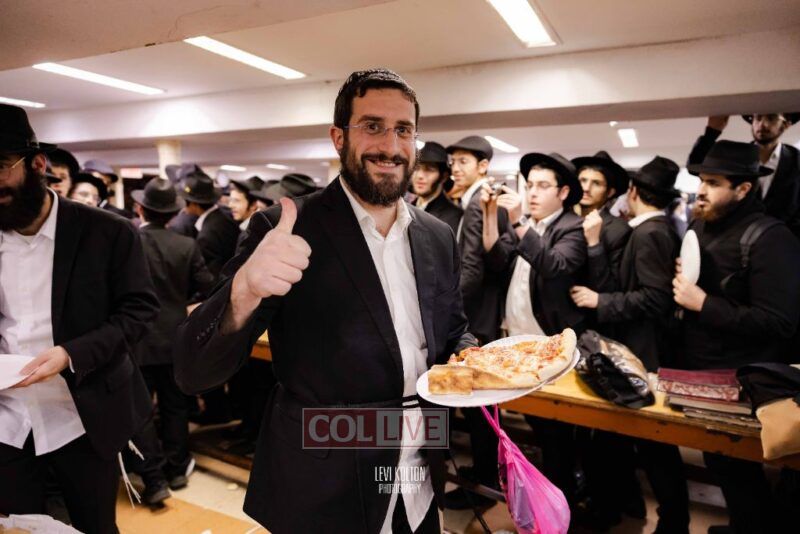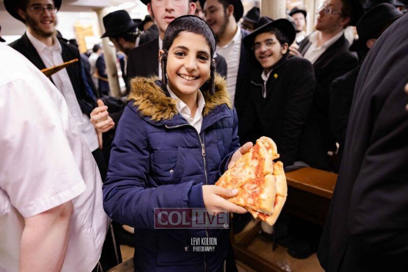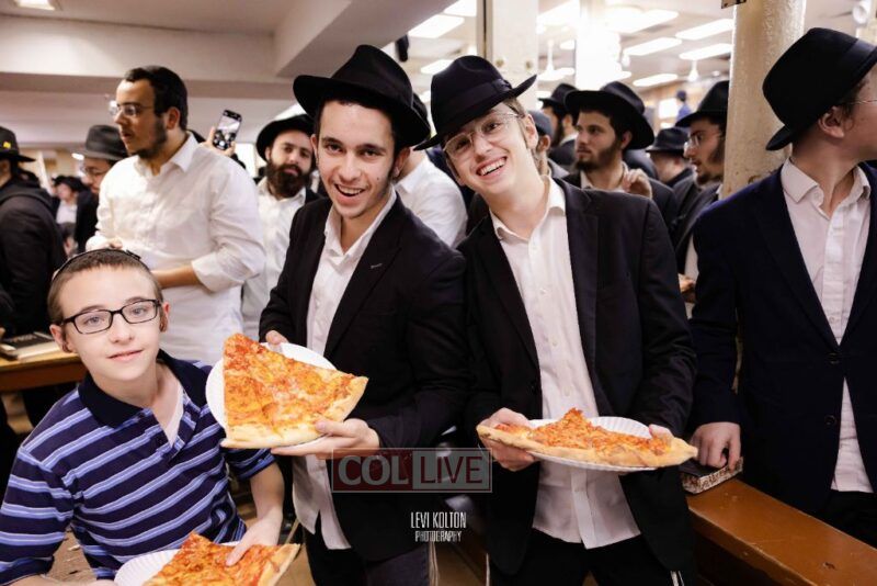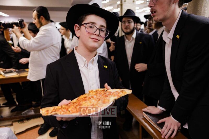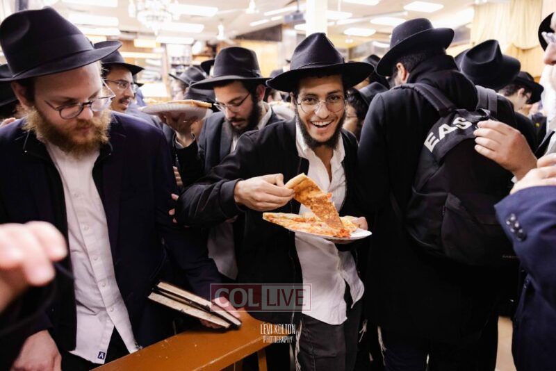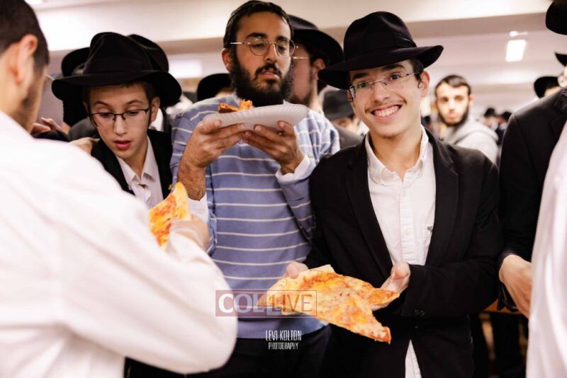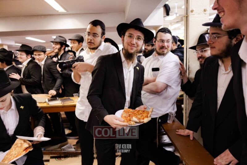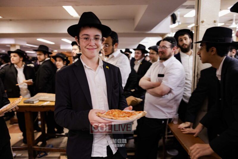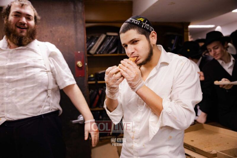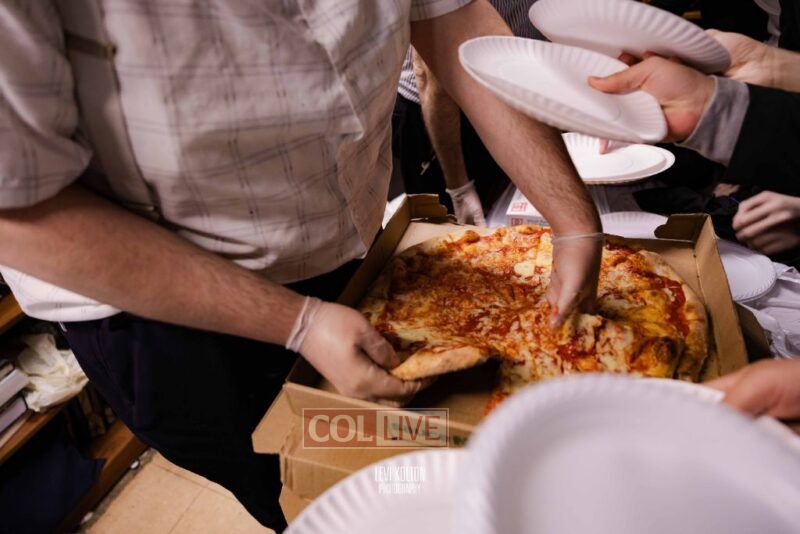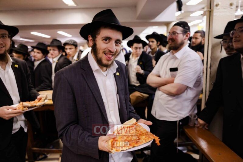 The Duchman family marked the completion of Kaddish for Rebbetzin Rochel bas Shneur Zalman Yissachar Getzel Halevi Duchman with pizza and l'chaims for the large crowd of Chassidim and bochurim at 770's Main Shul on Sunday. Photos