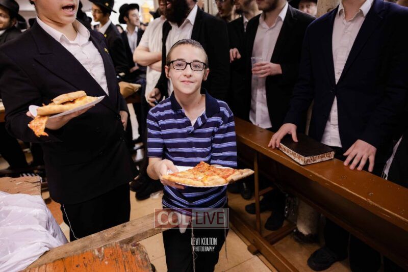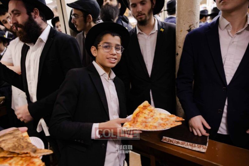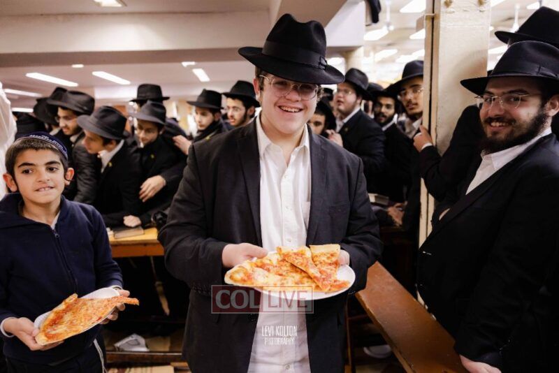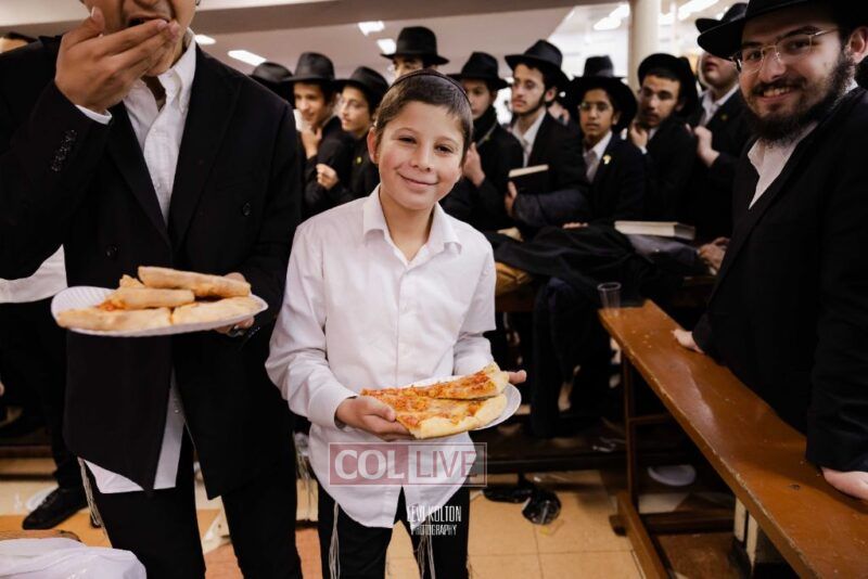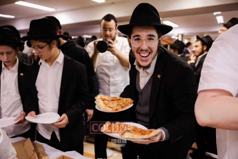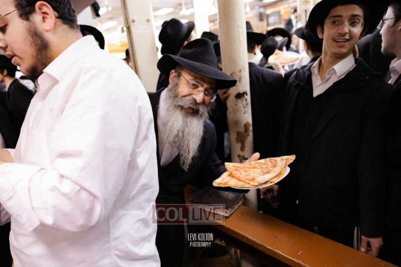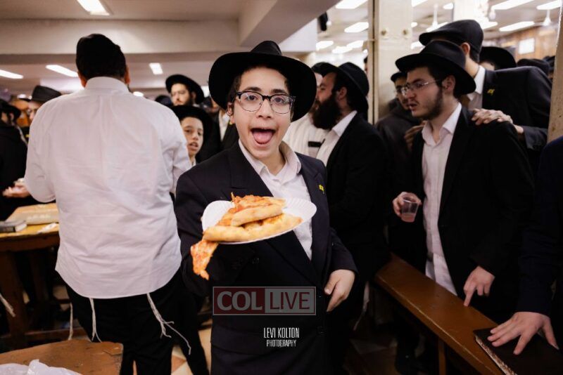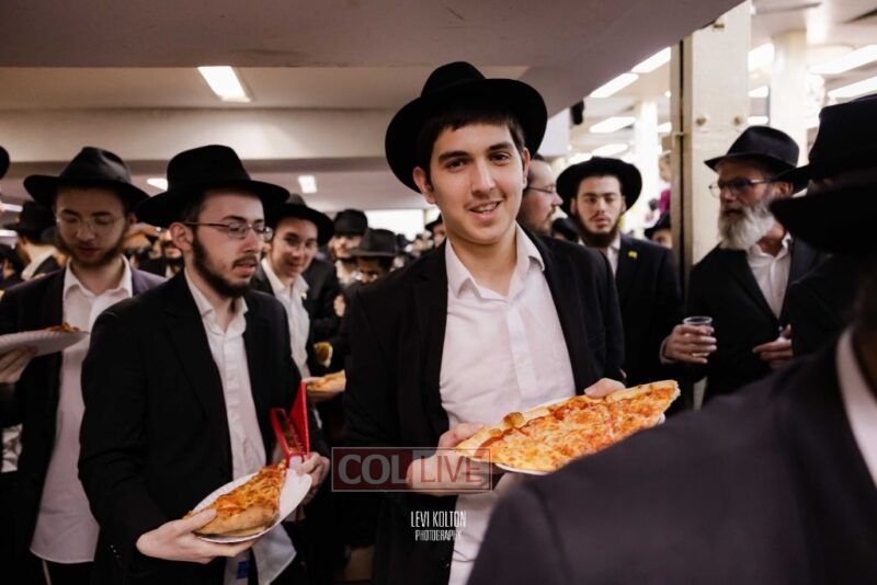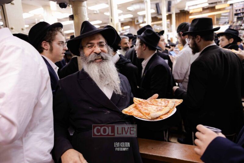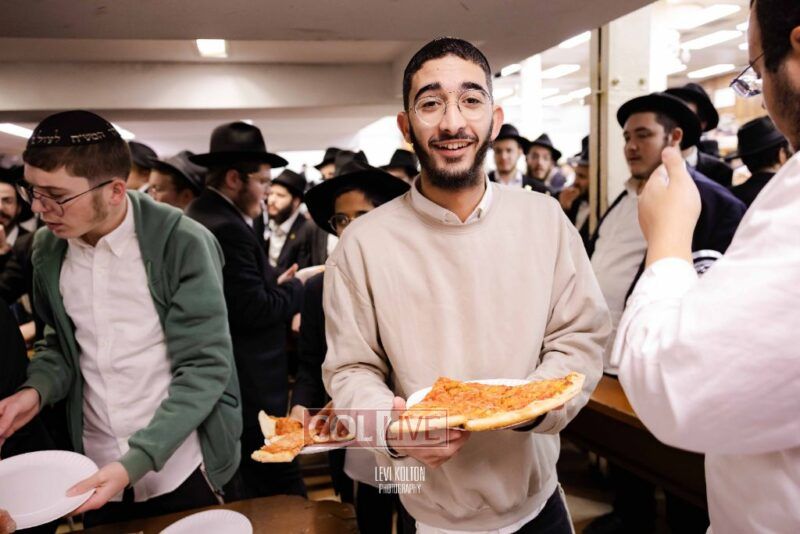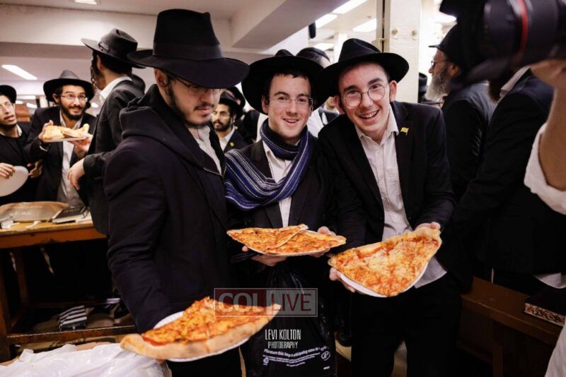 The Duchman family marked the completion of Kaddish for Rebbetzin Rochel bas Shneur Zalman Yissachar Getzel Halevi Duchman with pizza and l'chaims for the large crowd of Chassidim and bochurim at 770's Main Shul on Sunday. Photos