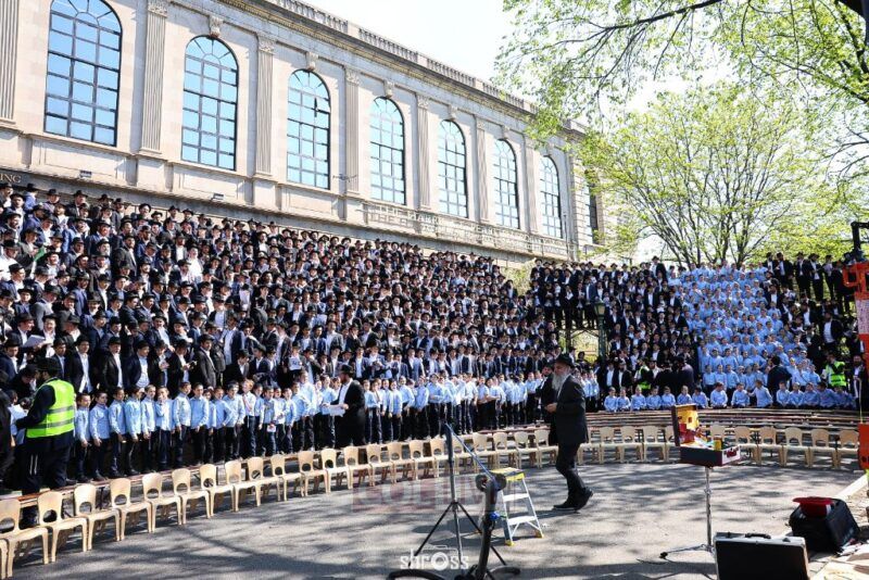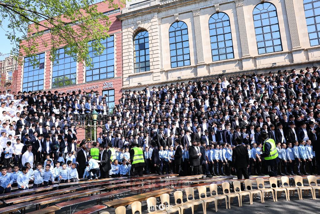 The entire Oholei Torah Yeshiva, the flagship Chabad Yeshiva in Crown Heights, posed for a group photo in front of their 667 Eastern Parkway campus on Thursday. Photos, Video