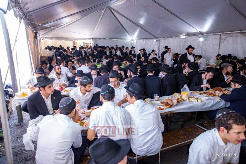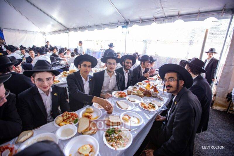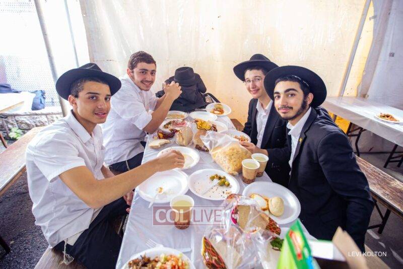Until now, the bochurim’s meals were held in the hall on the second floor of the Eshel building on Kingston Avenue, while the girls took place in the hall on the first floor.