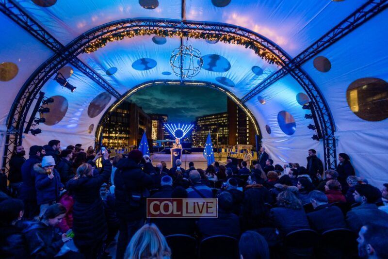 The event, organized by the European Jewish Community Center (EJCC) in cooperation with the European Jewish Association, brought together approximately 500 participants for the public lighting of the EuroMenorah in the heart of the European institutions district.