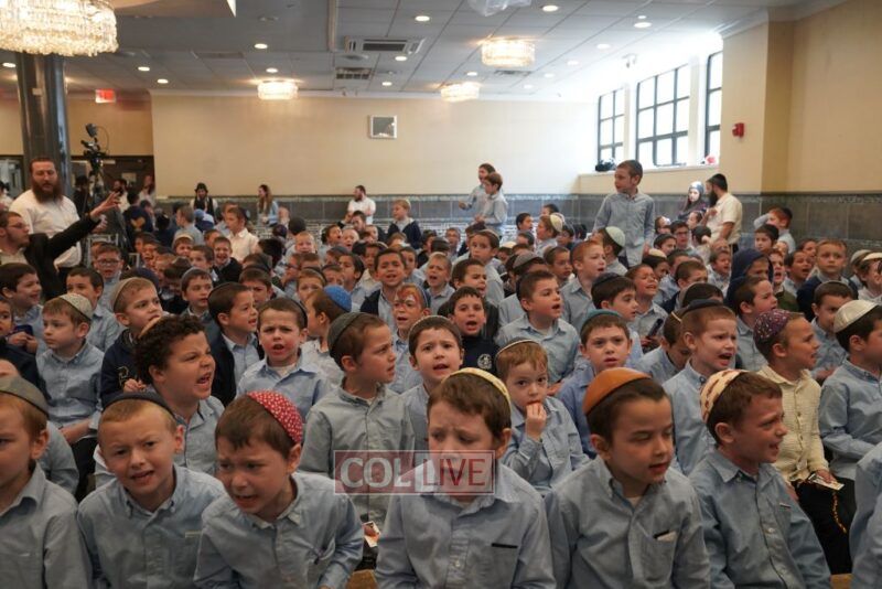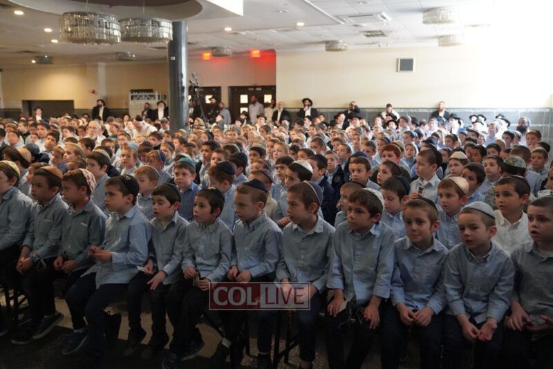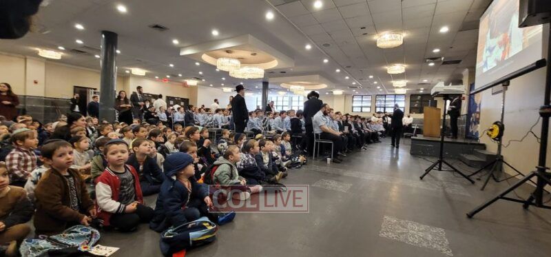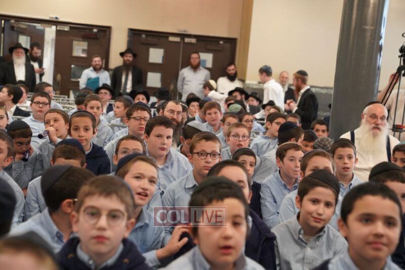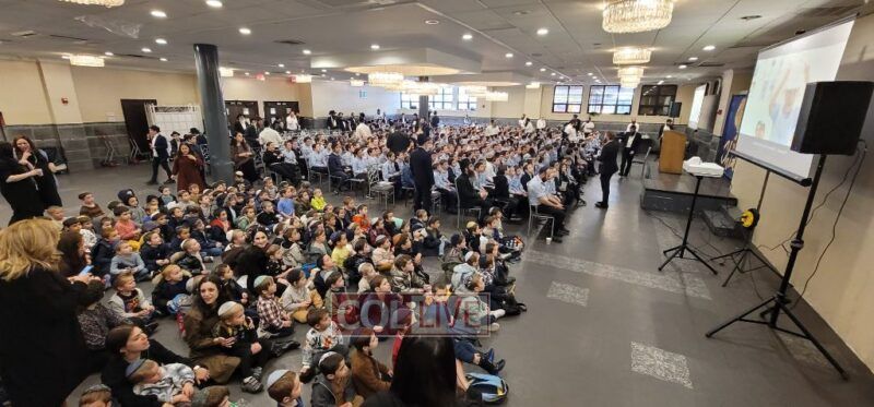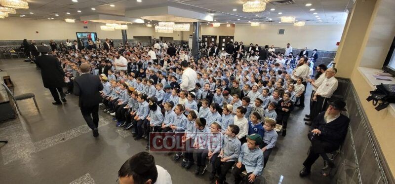 The large Simcha hall of the Yeshiva was filled to capacity for this unprecedented inclusion of all the grades, even the ‘taf’ of Preschool.