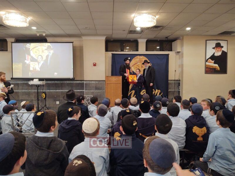The Siyum Harambam also served as the opportune time to present Hatomim Yossi Turk with the Gold Chidon Trophy that he earned for coming in first place in the Chidon Sefer Hamitzvos – 4th grade division.