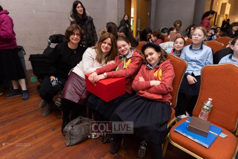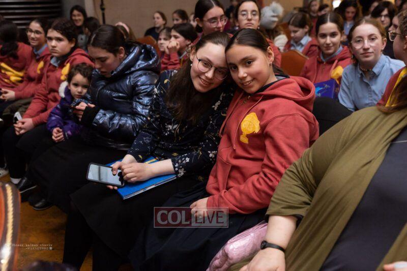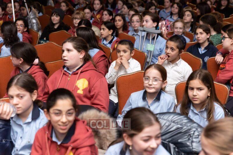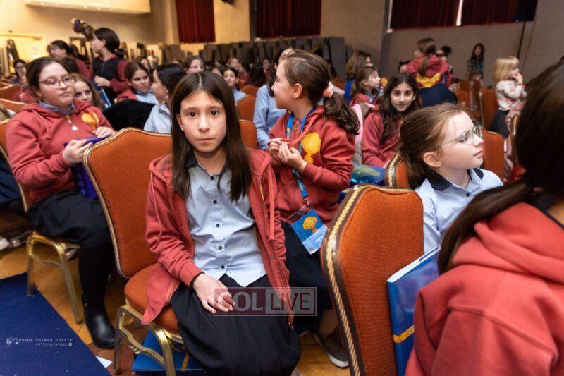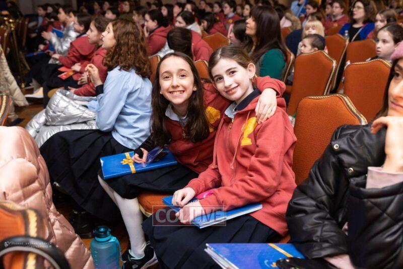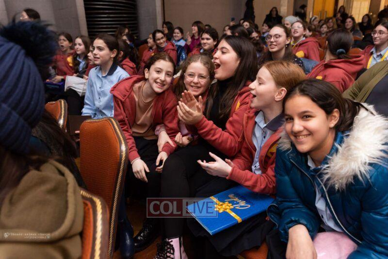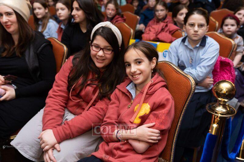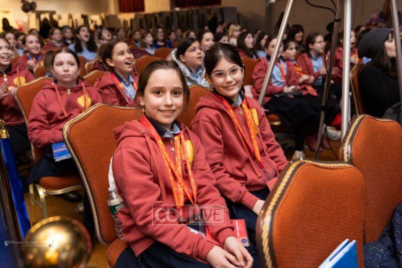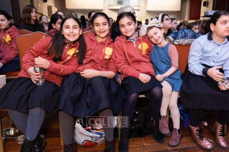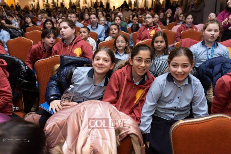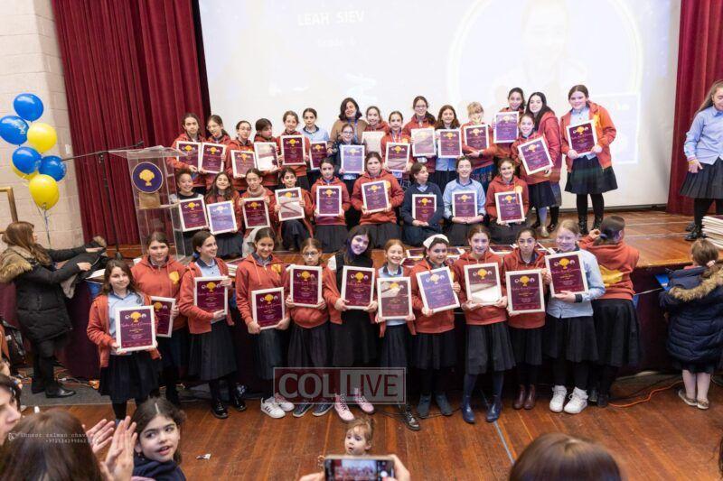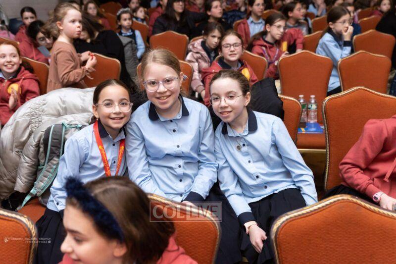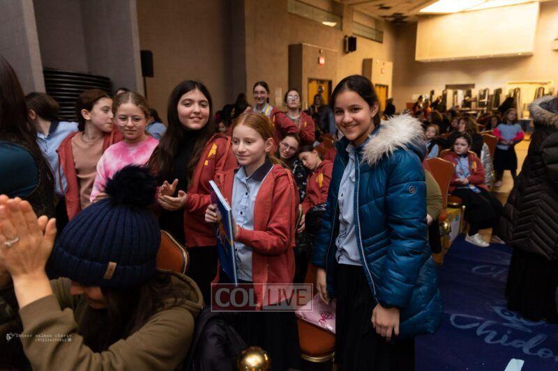 Hundreds of students from Bais Rivkah in Crown Heights gathered in the Rosa Hall for a viewing of the Chidon finale, followed by a trophy and award ceremony for the participants and their proud parents.