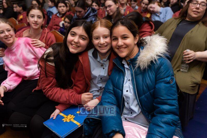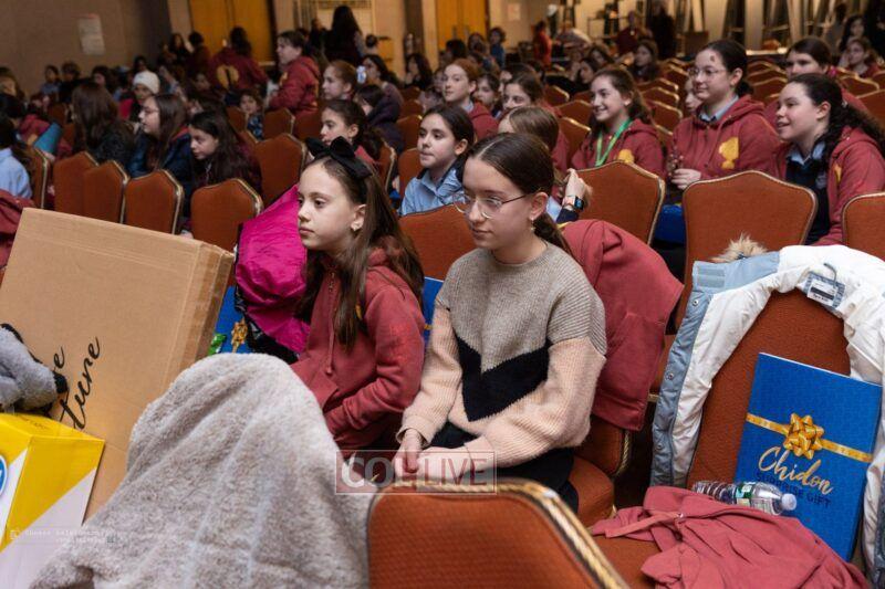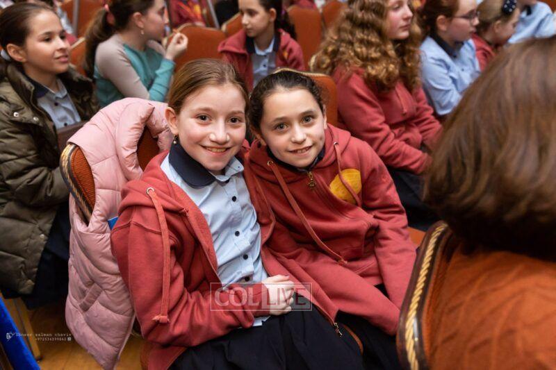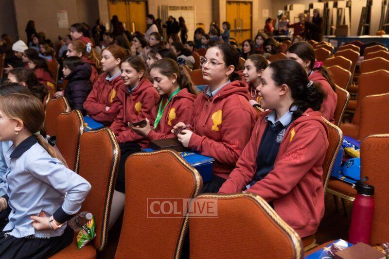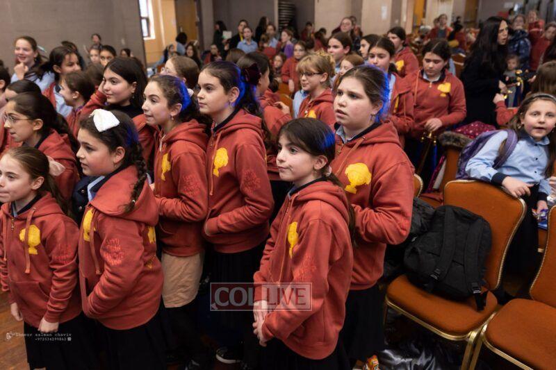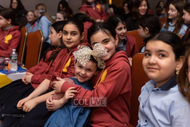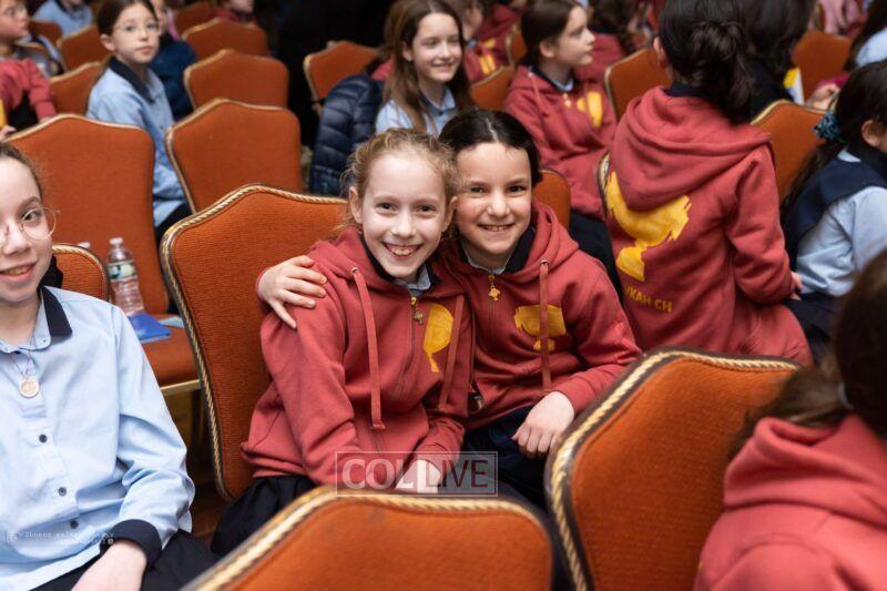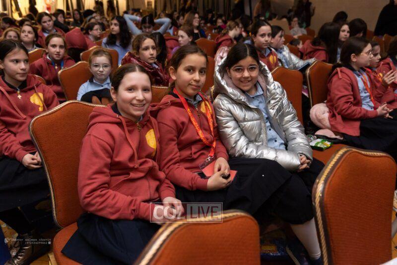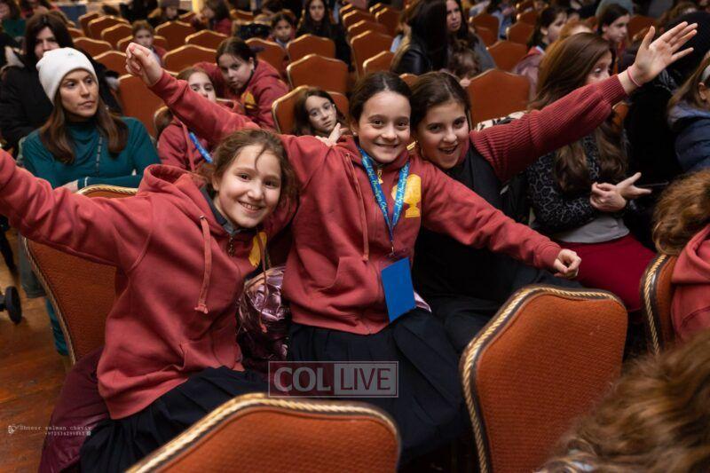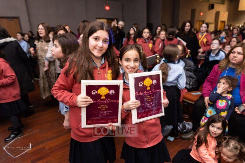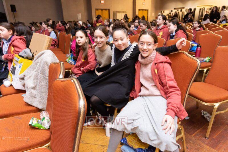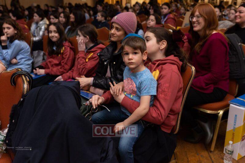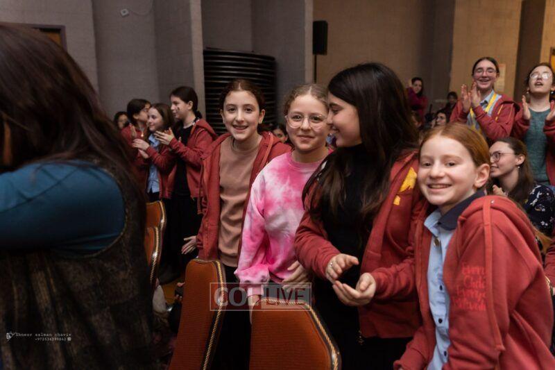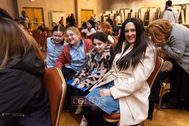 Hundreds of students from Bais Rivkah in Crown Heights gathered in the Rosa Hall for a viewing of the Chidon finale, followed by a trophy and award ceremony for the participants and their proud parents.