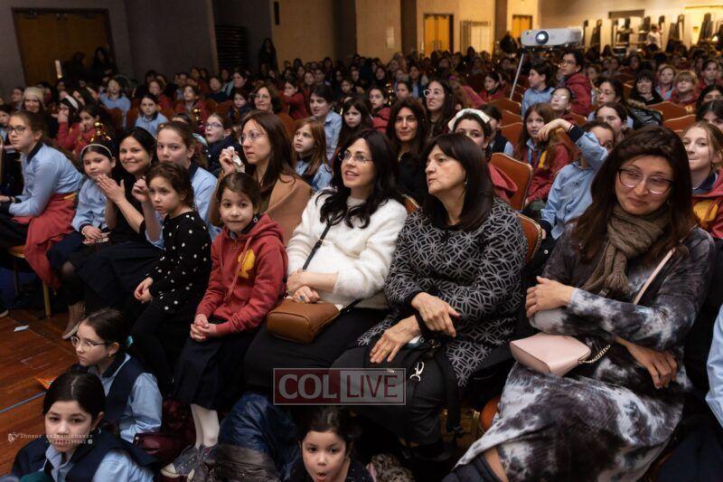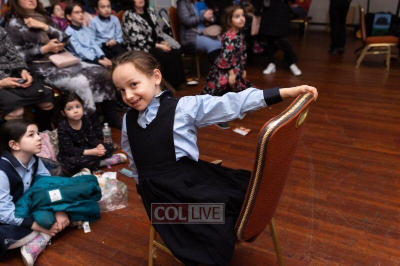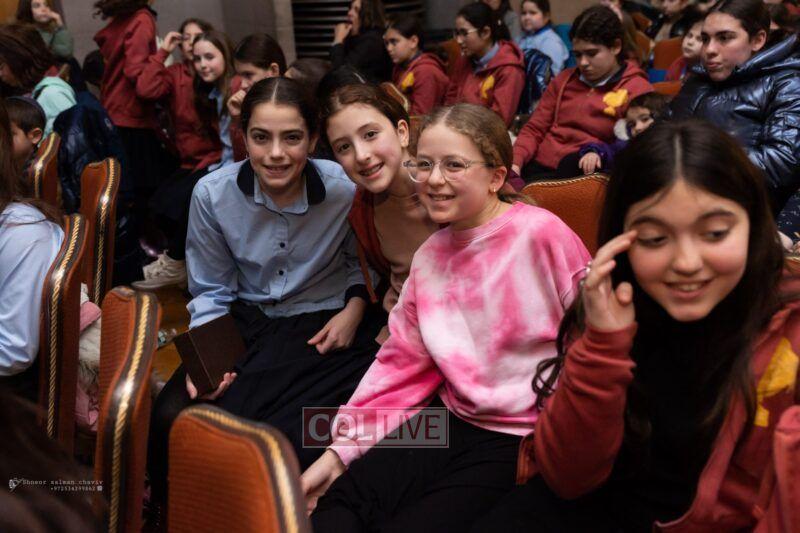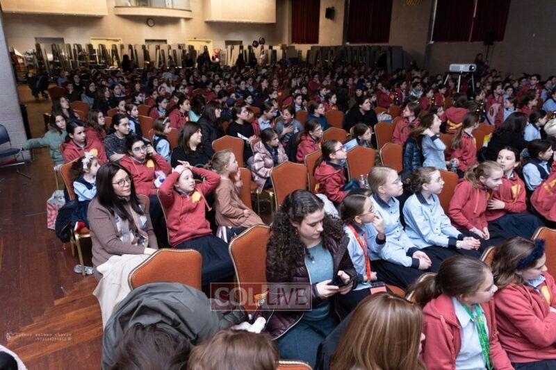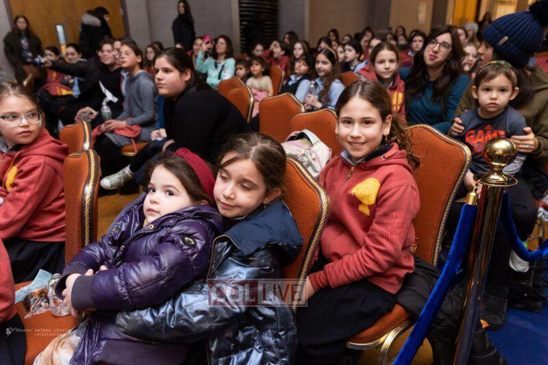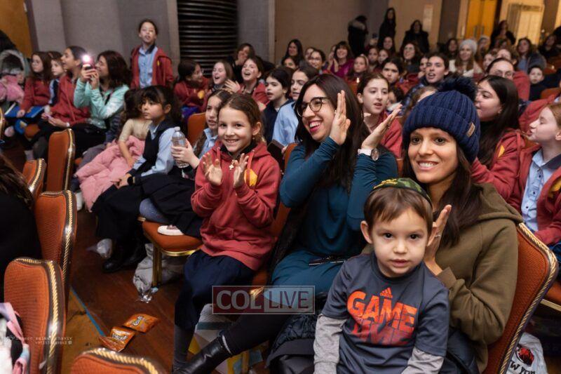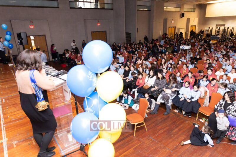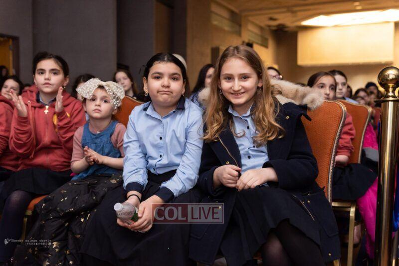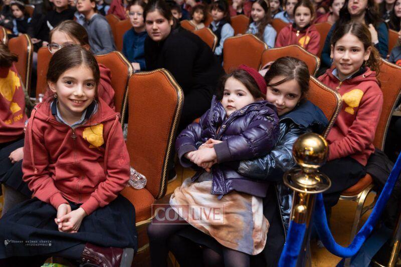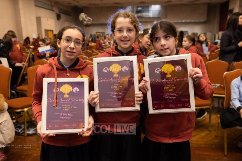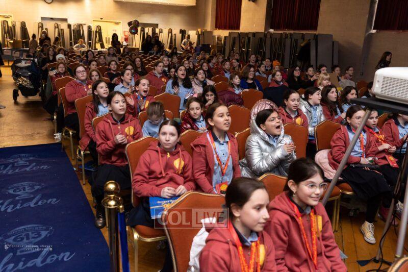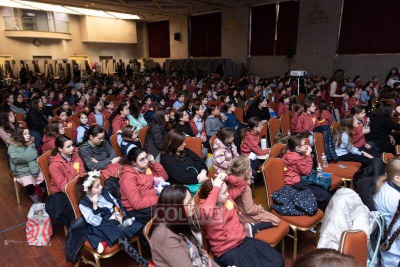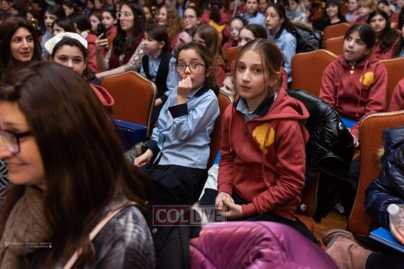 Hundreds of students from Bais Rivkah in Crown Heights gathered in the Rosa Hall for a viewing of the Chidon finale, followed by a trophy and award ceremony for the participants and their proud parents.