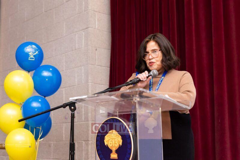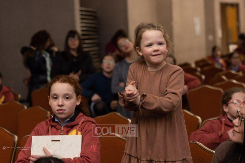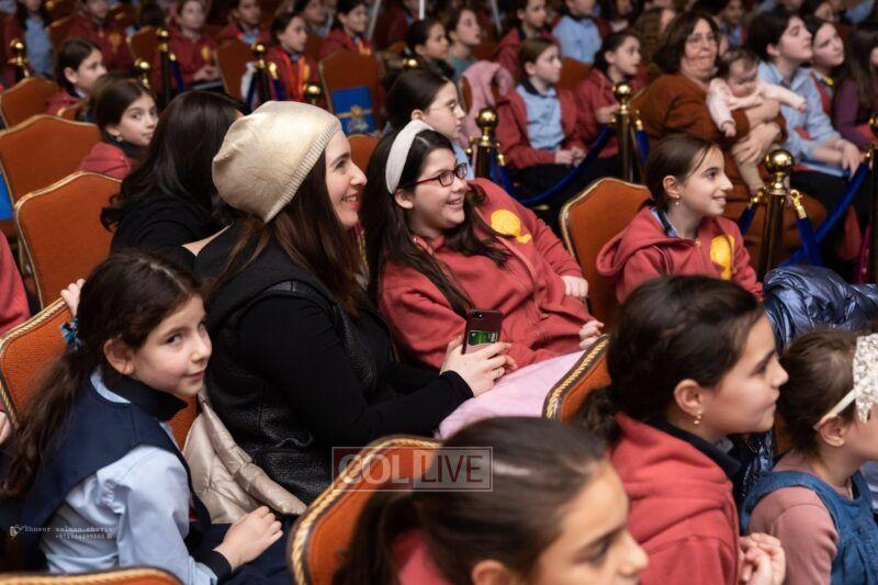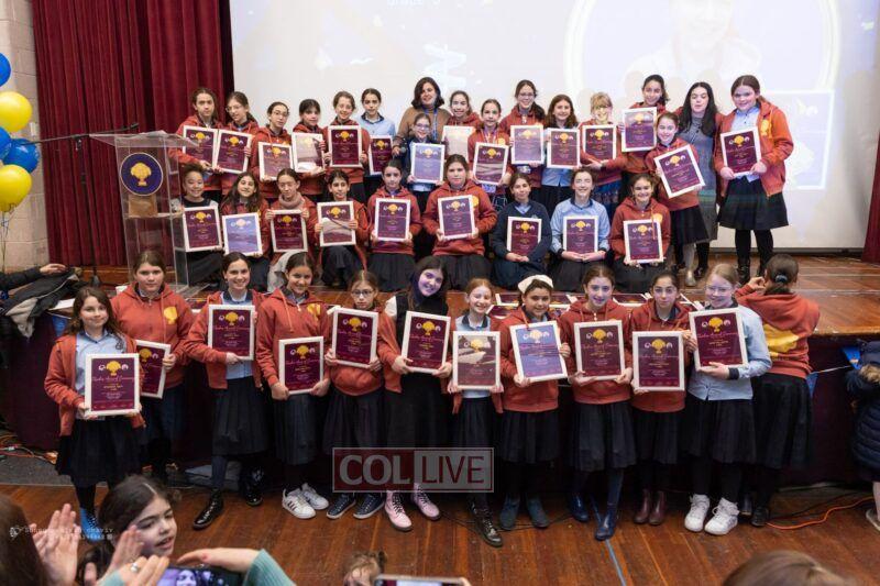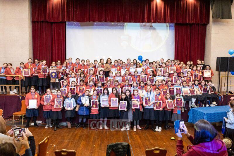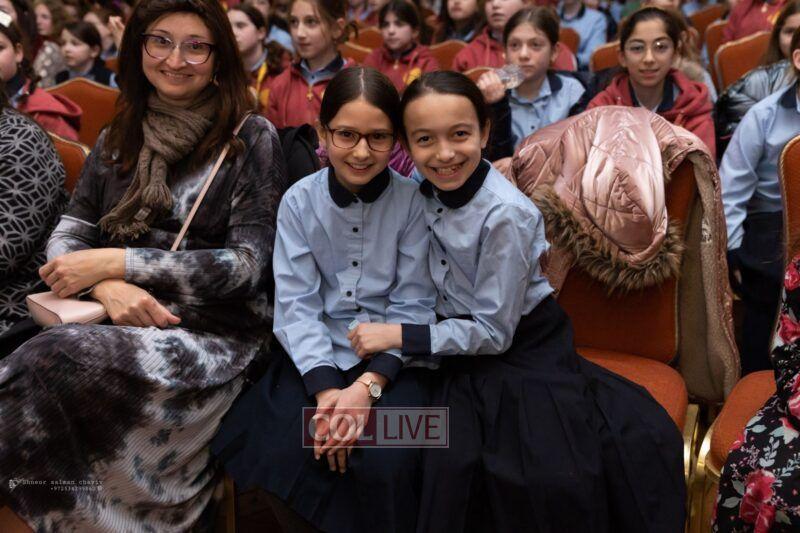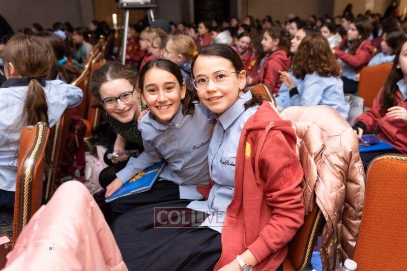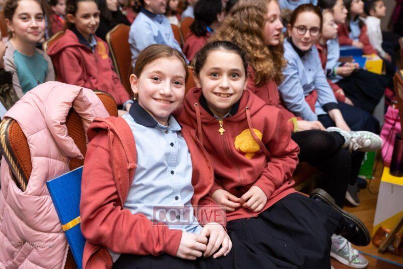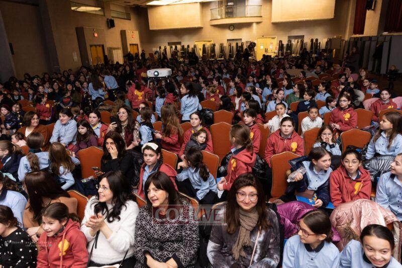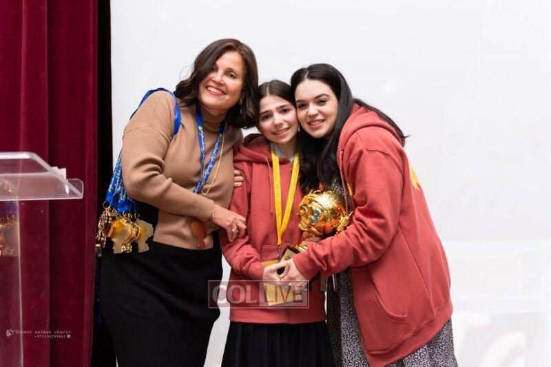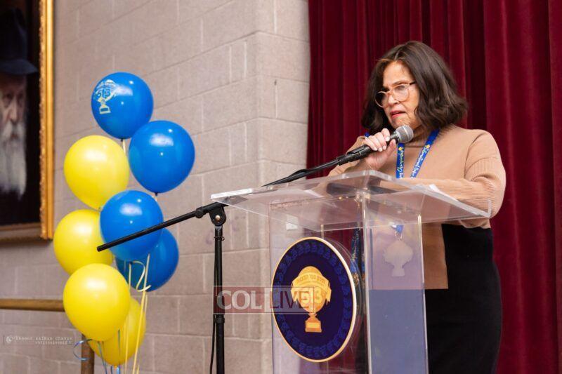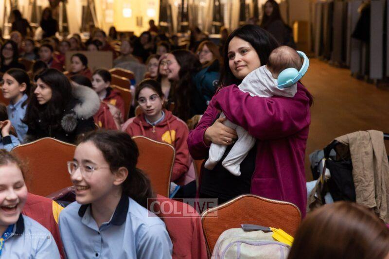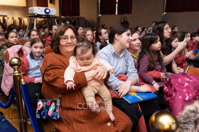 Hundreds of students from Bais Rivkah in Crown Heights gathered in the Rosa Hall for a viewing of the Chidon finale, followed by a trophy and award ceremony for the participants and their proud parents.