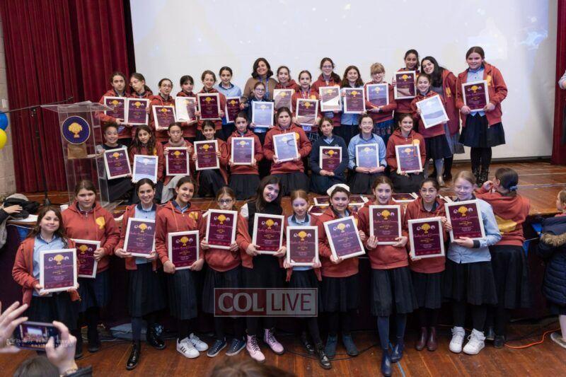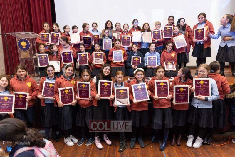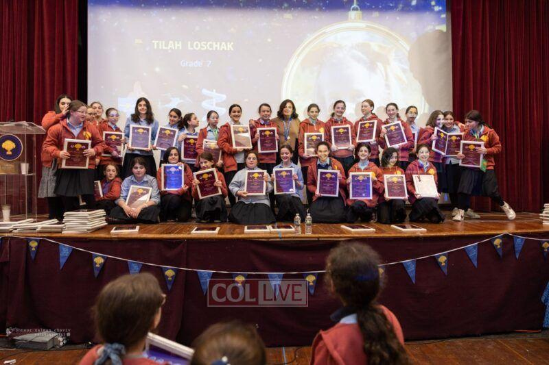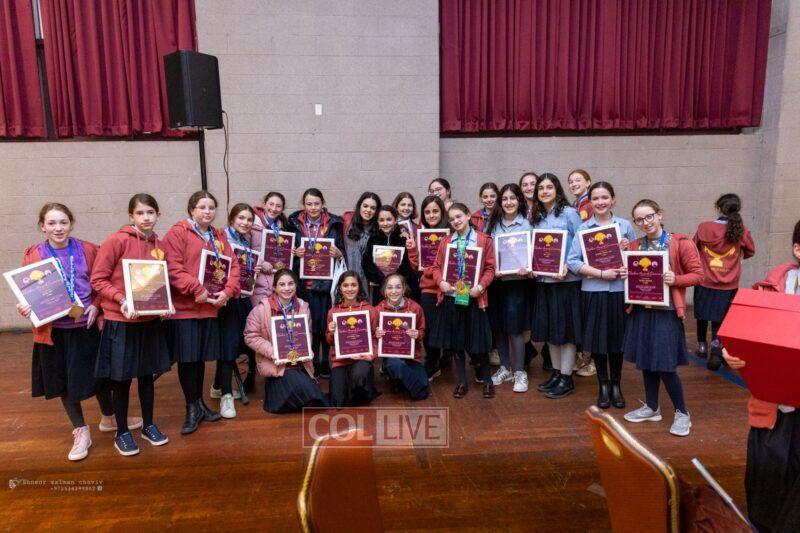 Prizes, plaques, and trophies were awarded amid great fanfare by Bais Rivkah’s Chidon coordinators Mrs. Esther Wilhelm and Devorah Leah Austin.
