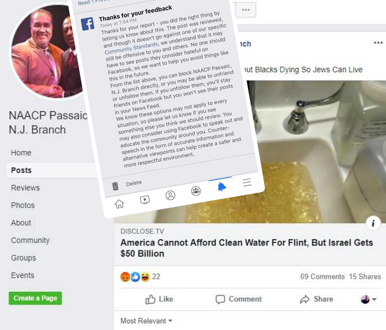 Facebook has refused to remove anti-Semitic remarks and a corresponding article from a well-known conspiracy theory-driven, fake news website posted on the NAACP’s Passaic, New Jersey, branch’s Facebook page with the caption, “blacks dying so Jews can live.”
