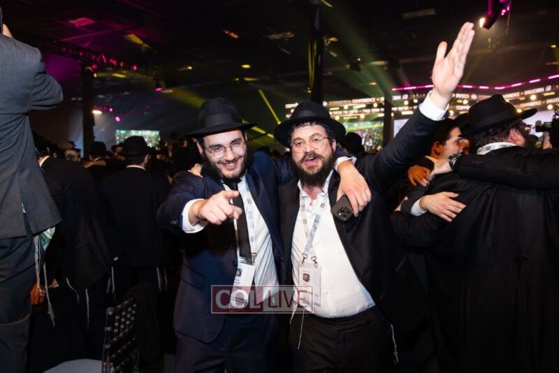 Participants of the gala banquet of the International Kinus Hashluchim 5785 pose for the COLlive camera during their gathering in Edison, New Jersey. Photos