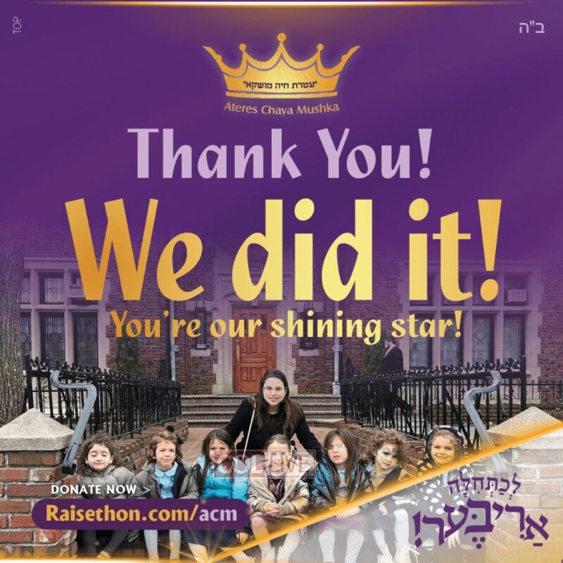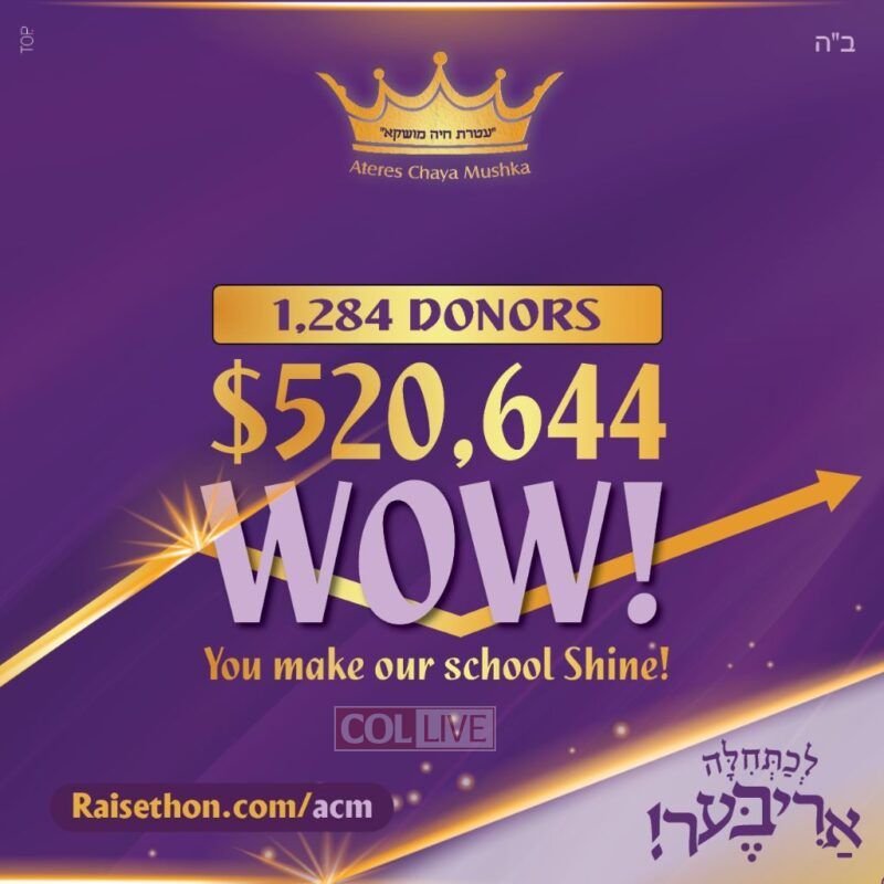 The miraculous success of the campaign is a testament to the school’s unwavering commitment to the idea of “Lechatchilah Ariber,” going above and beyond in everything they do. Because every child deserves the best education. Every child is a unique and beautiful whole world.