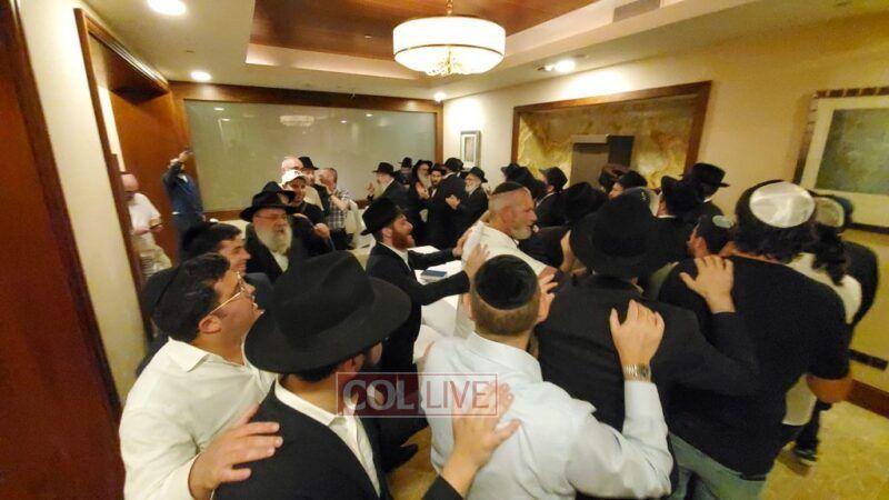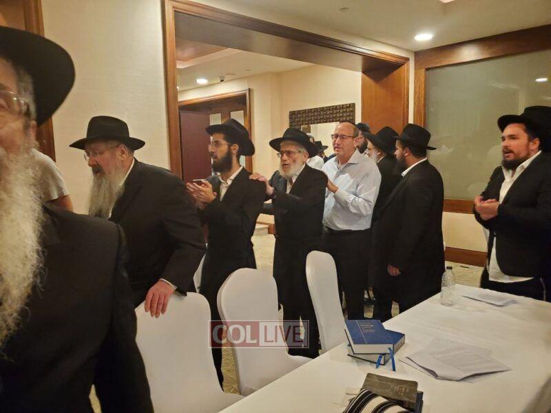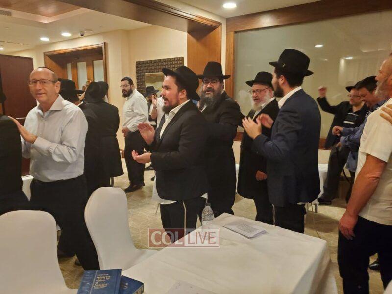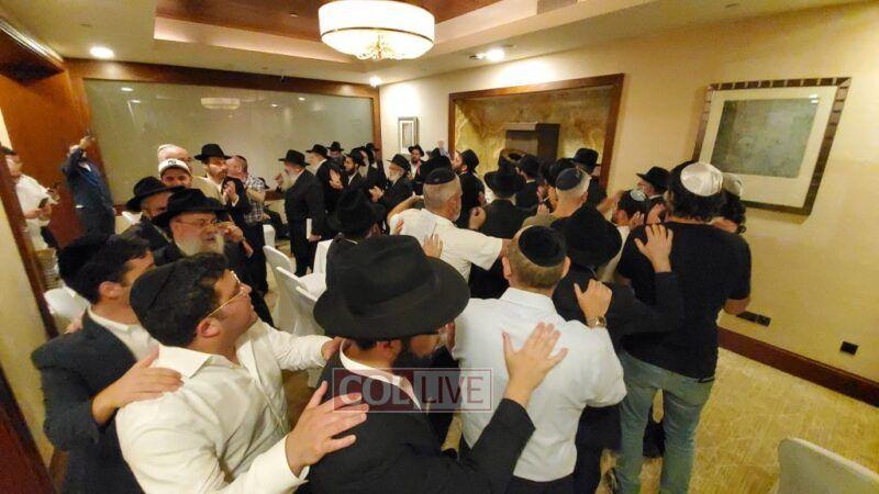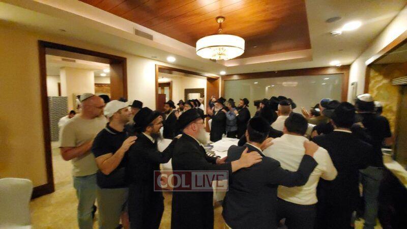 The Farbrengen was led by Rabbi Yossi Chitrik, Rabbi Sholom Duchman and Rabbi Menachem Hadad.