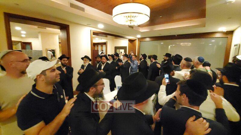 After the Shabbos Sheva Brochos of Rabbi to the UAE Levi Duchman and Lea Hadad , with many guests including family, friends and members of the Jewish community, many gathered for a warm Farbrengen.