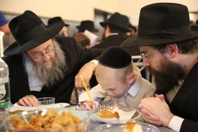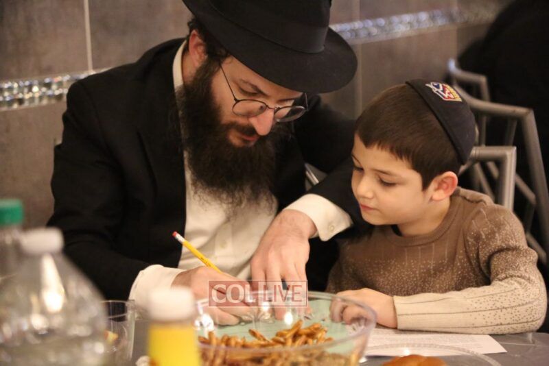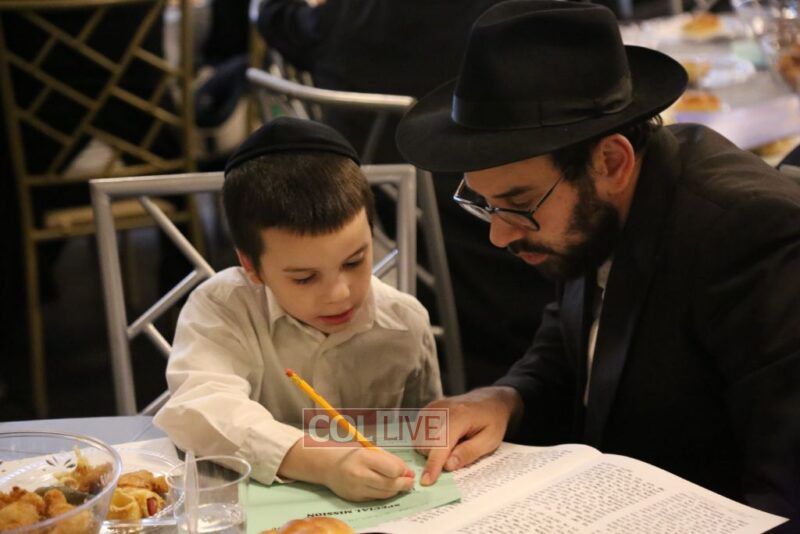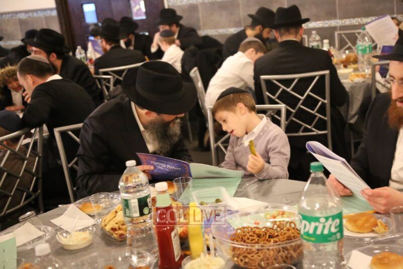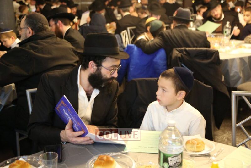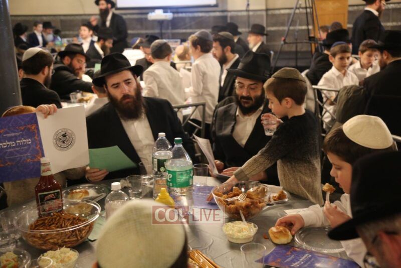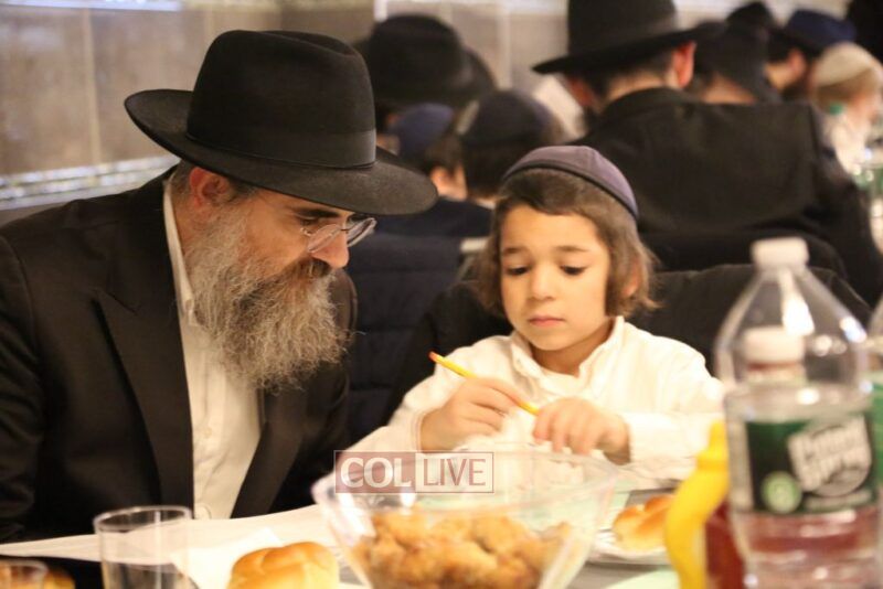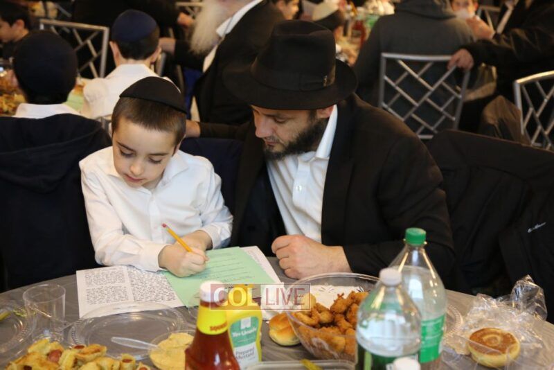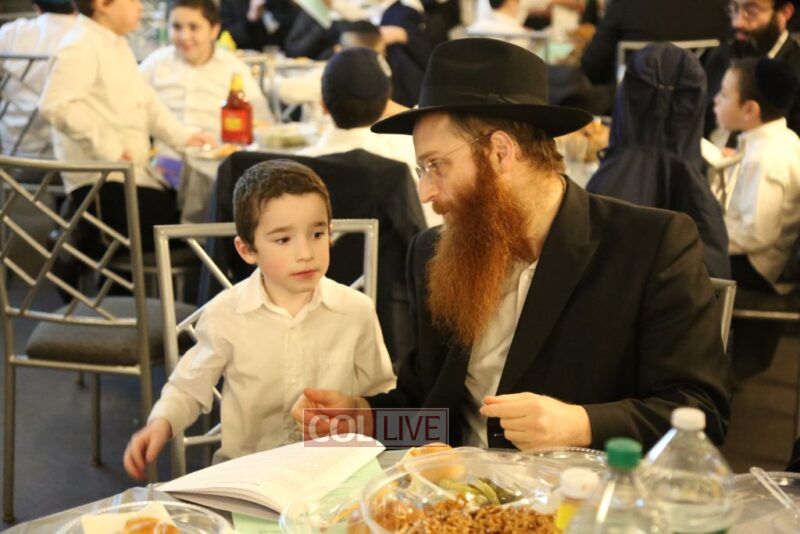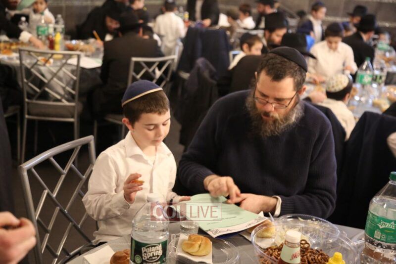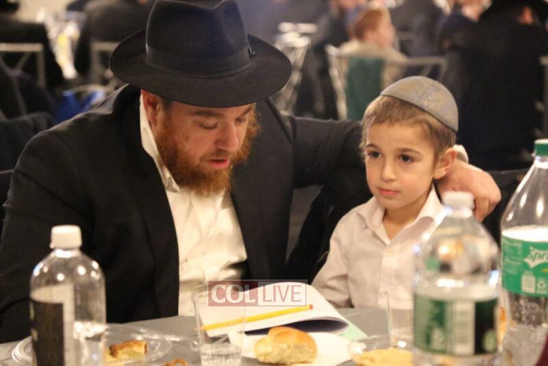 Talmidim from Lubavitcher Yeshiva grades 1-3 gathered with their fathers and grandfathers recently for a Shnas Hakhel Melava Malka.