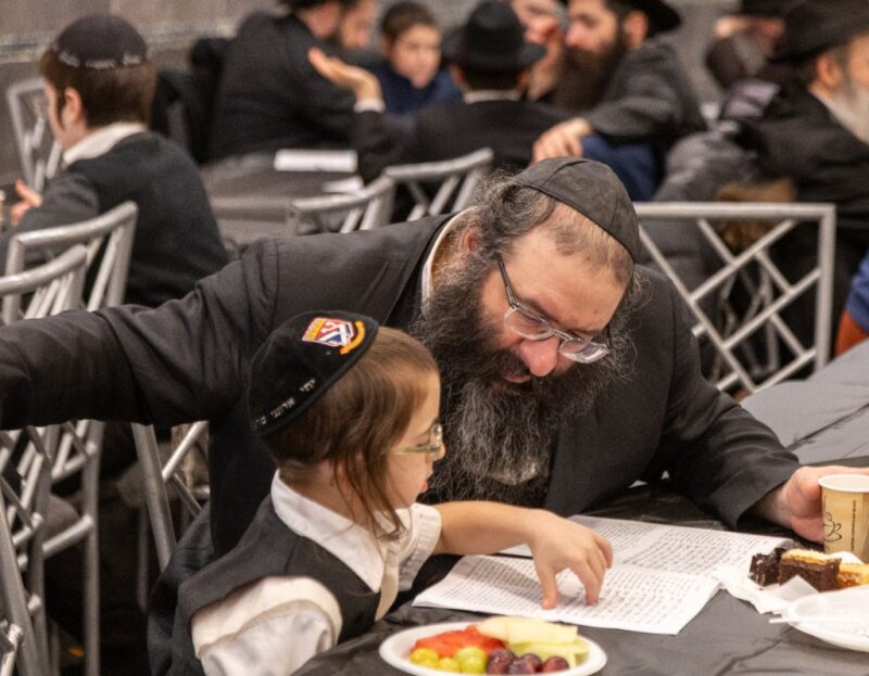 Rabbi Yosef Y. Braun, a parent and esteemed Rav of our Shchuna was honored with making the official siyum on all 14 seforim of the Rambam – the entire Torah Shbaal Peh. “Sisu V’simchu Bsimchas Torah” was joyously sung after which Rabbi Menachem Mendel Hakohen Hendel was then honored with beginning the new cycle of Rambam.