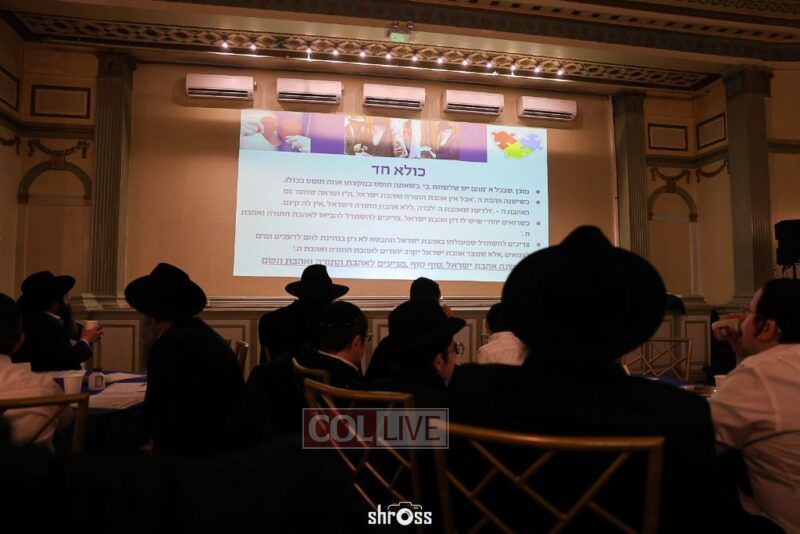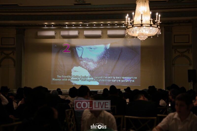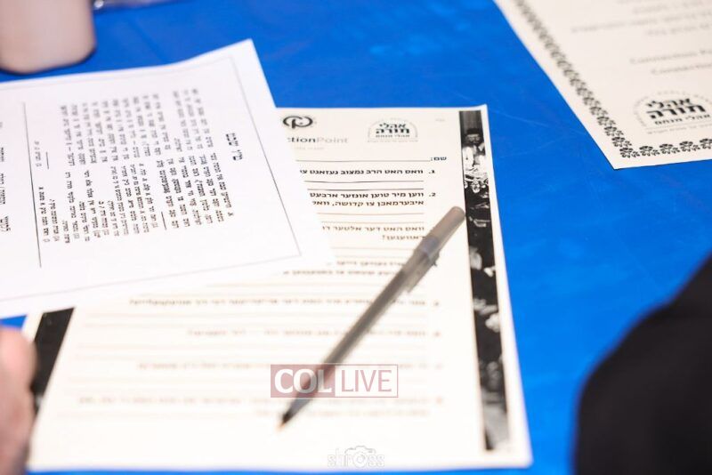The farbrengen progressed with a video presentation of a segment from Basi L’gani, following which Talmidim and their fathers answered Connection Point questions on the Maamer and the Sicha. Rabbi Lustig then led the room in singing the Beinoni and Shamil Niggunim and reciting Tehillim for the safety of Eretz Yisrael.