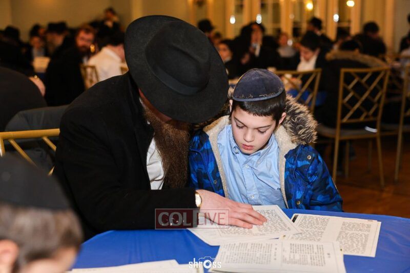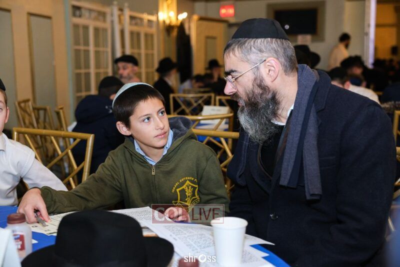 On Sunday, a gathering of enthusiastic fathers and sons of Oholei Torah’s sixth and seventh grade division took place to learn and farbreng in honor of Yud Shvat. The Oholei Torah ballroom welcomed participants with an inviting setup, comprehensive printed materials, and light refreshments.