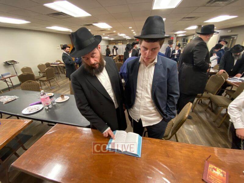 Over Shabbos, both the fathers and sons spend time davening, learning together and at farbrengens with the maggidei shiur and members of the Hanhala.