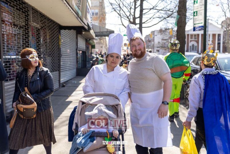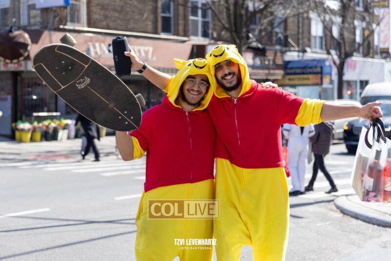 The streets of Crown Heights were filled with residents giving Mishloach Manos dressed in creative, fun and interesting costumes on Friday. Photos, Video