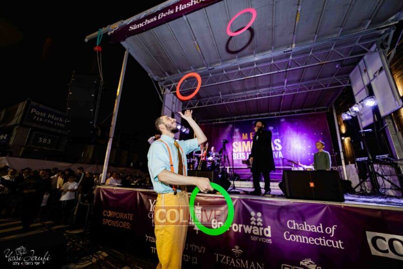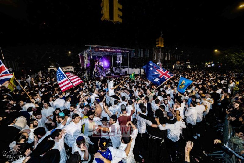 The yearly dancing was instituted by the Rebbe and has been led for decades by Rabbi Yisroel Shemtov, who has once again ensured a nightly celebration over Chol Hamoed, featuring the biggest stars in Jewish music.