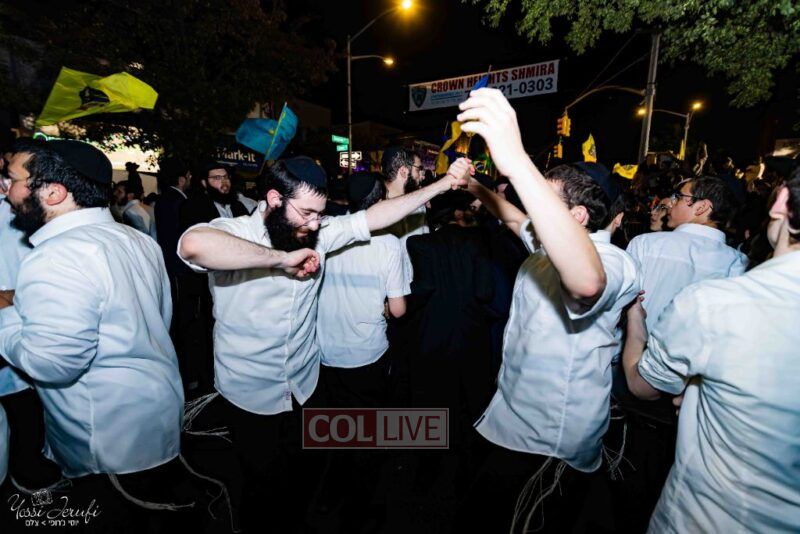 The fifth and final night of the annual Simchas Beis Hashoeiva celebration with music and dancing in the streets of Crown Heights took place Thursday.