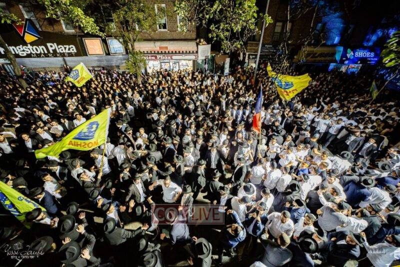 Thousands joined for the final night of Simchas Beis Hashoeiva dancing in Crown Heights on Sunday, followed by the crowd marching together to 770 for the reciting of Tehillim. Photos, VIdeo