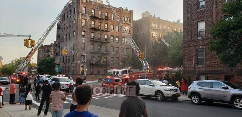 Flames poured out of a 1st-floor apartment of the 6 story building at around 7:15 pm, and quickly spread to apartments above and near it, bystanders told COLlive.
