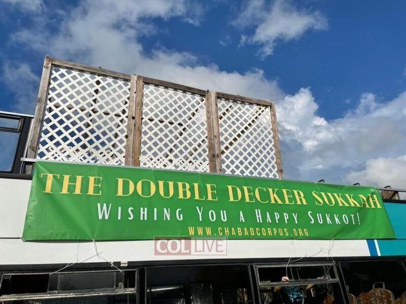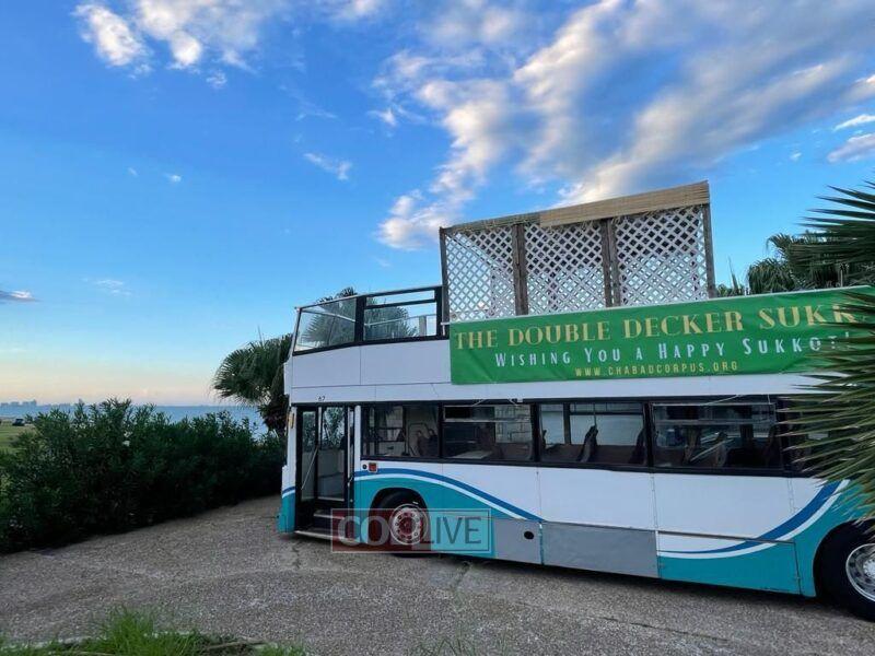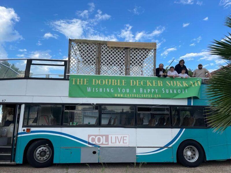 The Jewish community of Corpus Christi, Texas got the opportunity to celebrate sukkos this year in a whole new way, on a double-decker bus taking the sukkah mobile experience to the next level – quite literally! Shluchim Rabbi Naftoli and Nene Schmukler acquired the Double Decker Bus and built a large sukkah on the top of the bus!