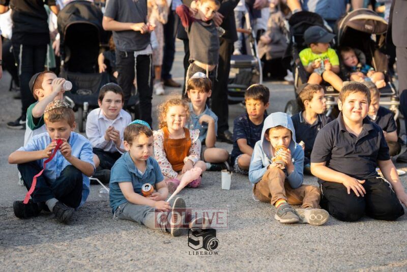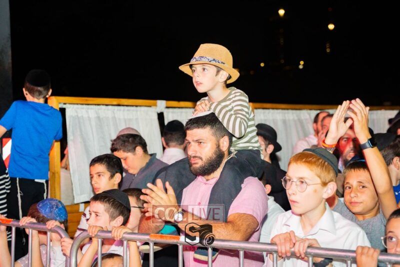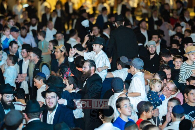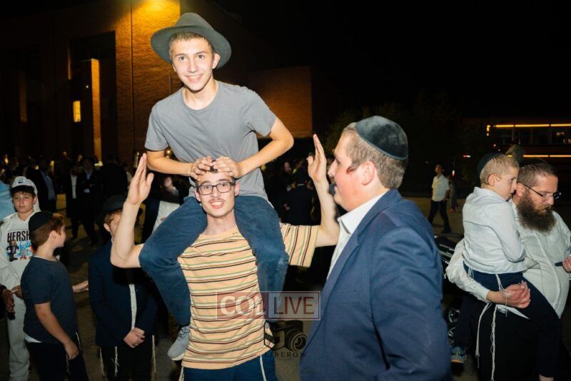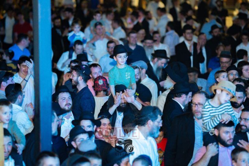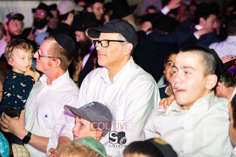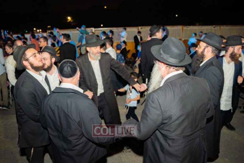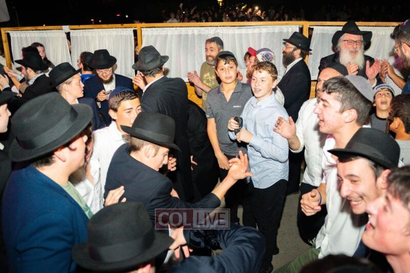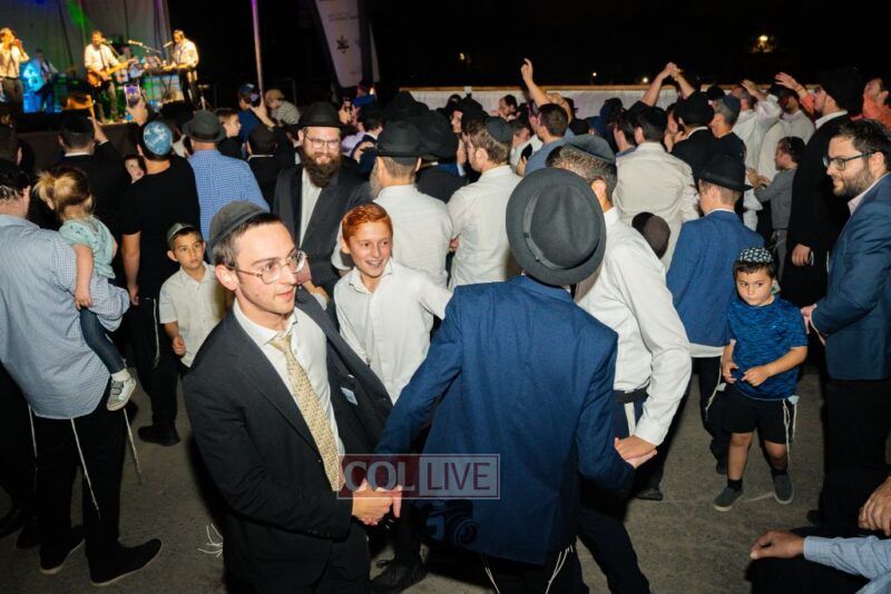 The joyous dancing was livened by performances by the 8th Day Band and Sruly Williger, with music arranged by Shlomo Simcha.