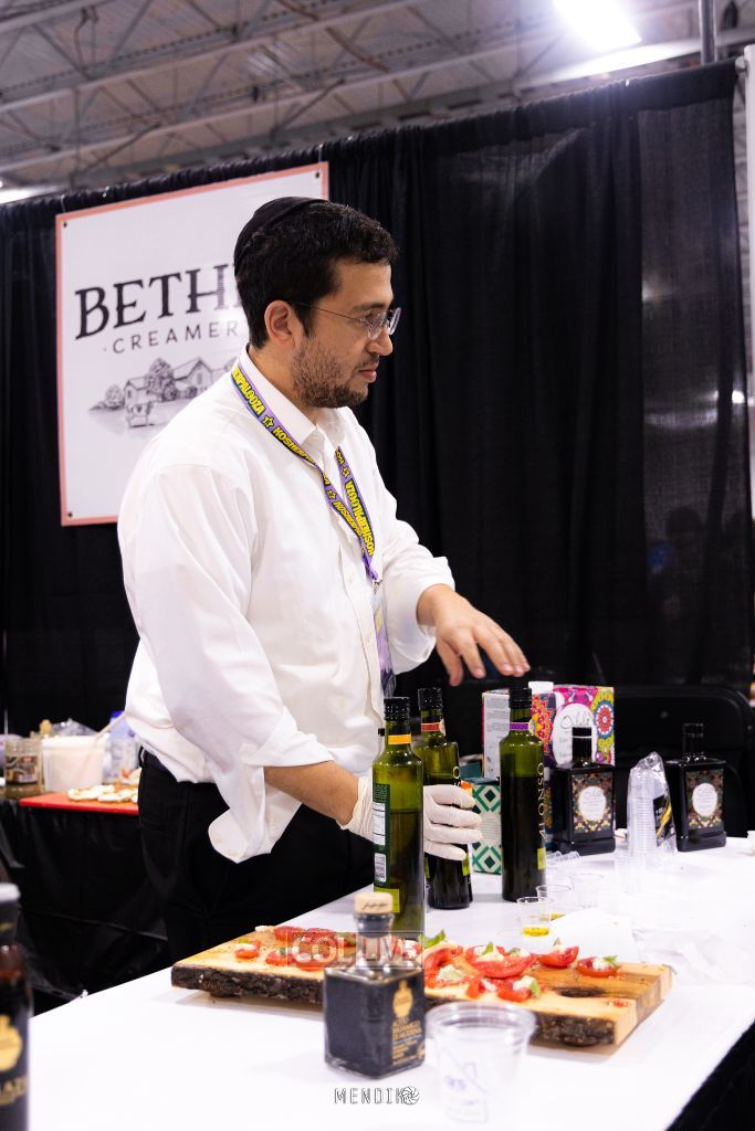 Try not to be overwhelmed by the bustle of this indoor shuk – the chattering of men in black jackets and yarmulkas, women in sheitels and bright snoods. All are united, celebrating kosher food in 2023. And there’s a whole lot to celebrate.