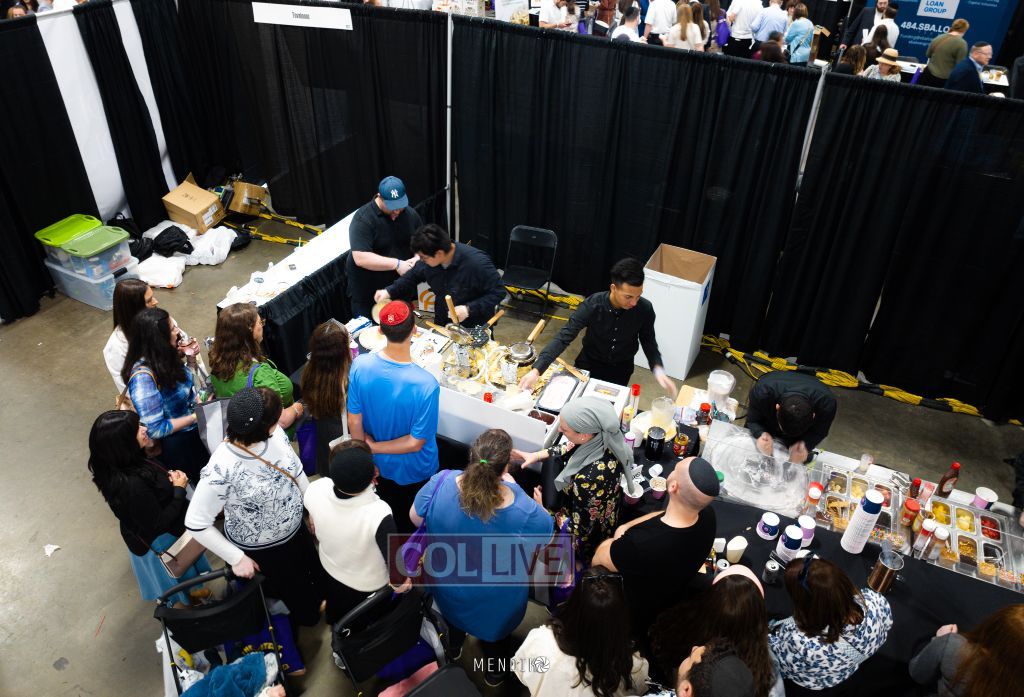 Indeed, the 61,000 sq. feet exhibit center was alive. At its center were soaring trees bursting with white blooms. The live DJ set up near the Masbia blind taste test, mixed tunes as the hot sauce competition was in full gear. The Mixcraft bartending competition was up next.