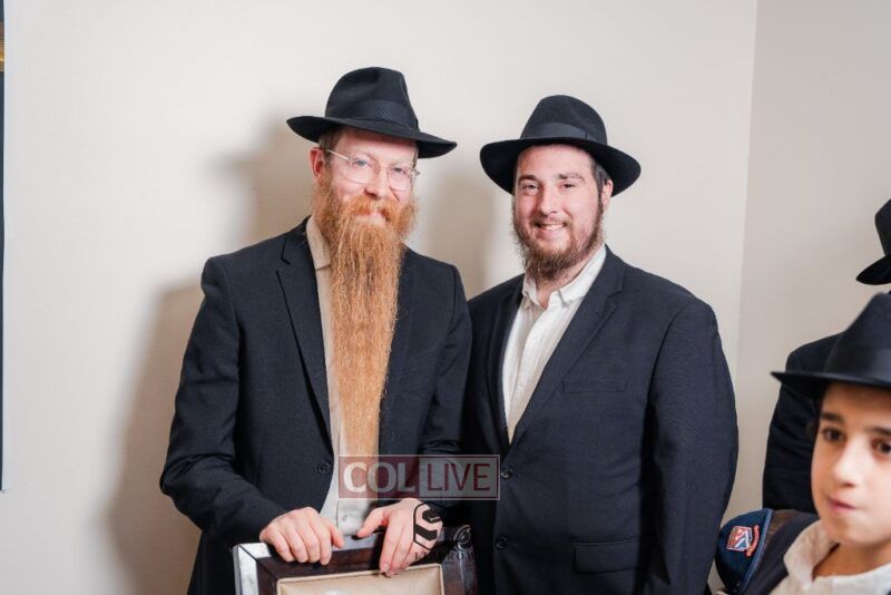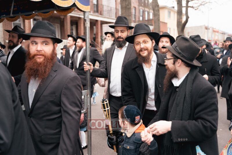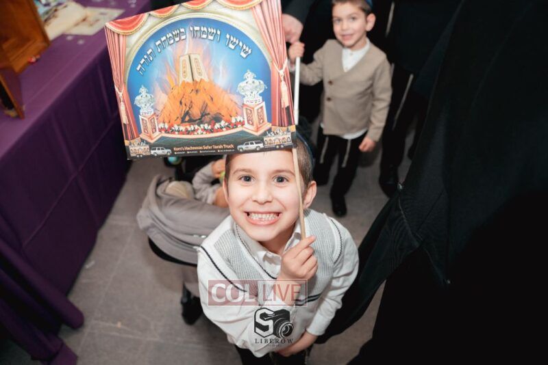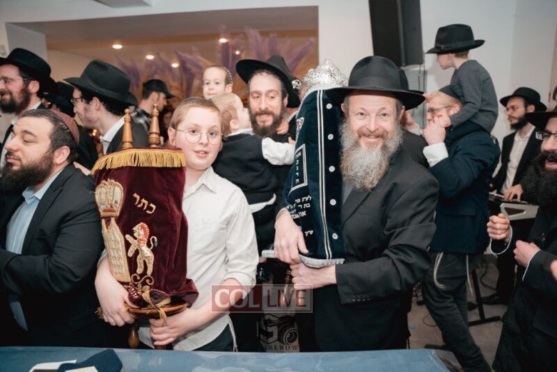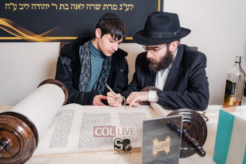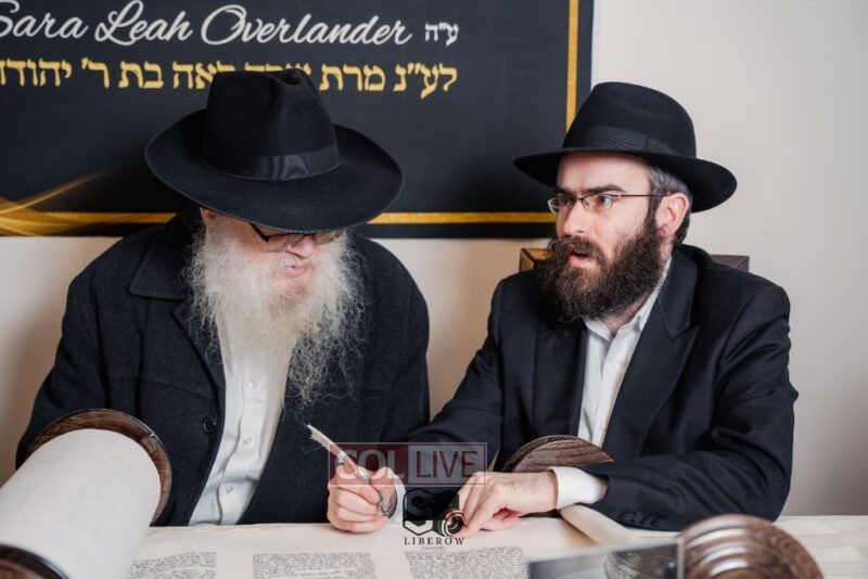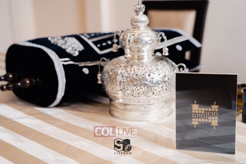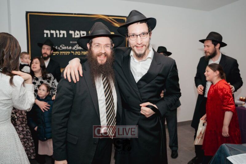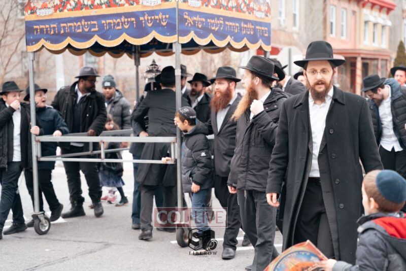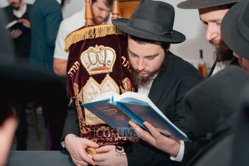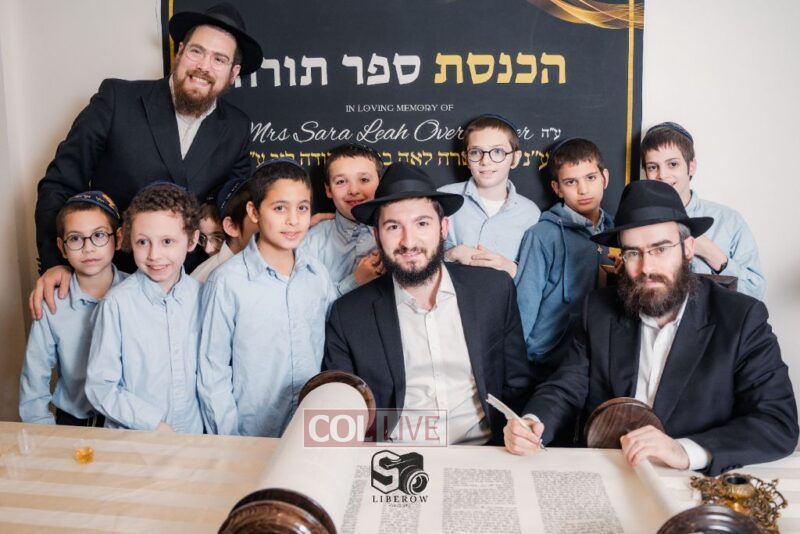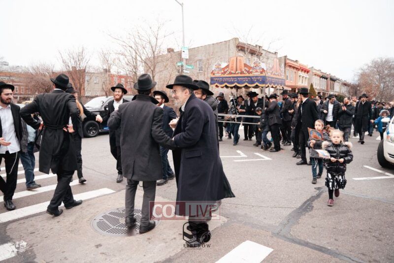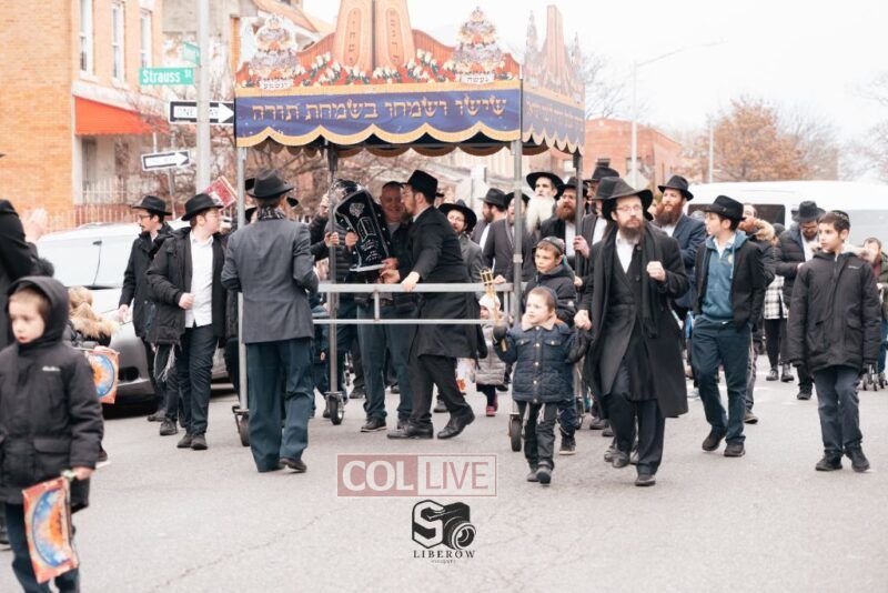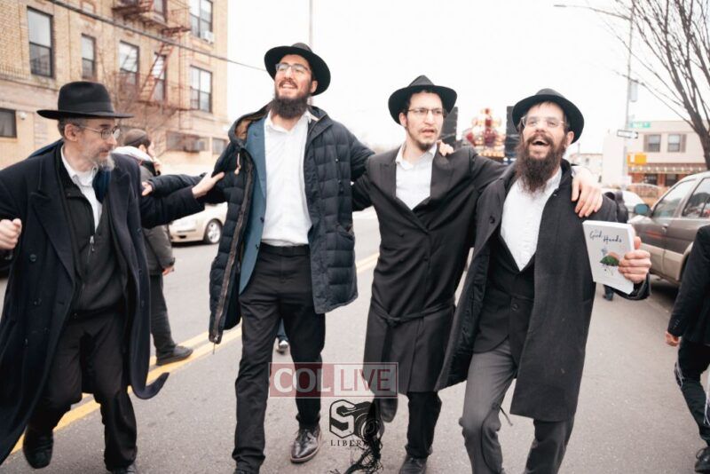 The writing of the final letters took place at 84 Amboy St, Brooklyn NY, followed by a procession to 125 Dumont Ave, for dancing and hakafos.