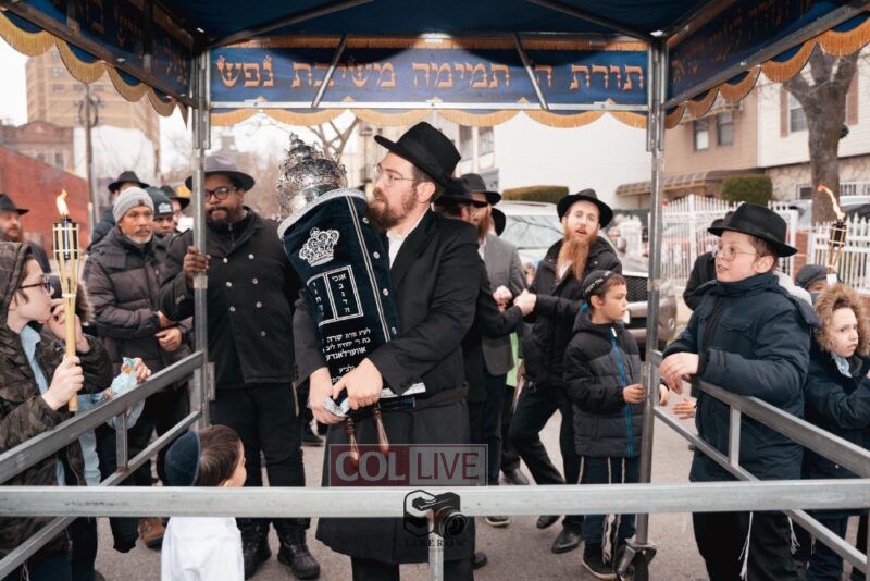 The siyum sefer Torah marks a historic revival of Jewish life in Brownsville, NY, which once thronged with Yidden 100 years ago but mostly emptied of its Jews in the 1960s. The neighborhood has begun to see a rebirth of Yiddishkeit in recent years as a young Lubavitch community springs up on its streets, complete with bustling shul, multiple weekly shiurim and events.